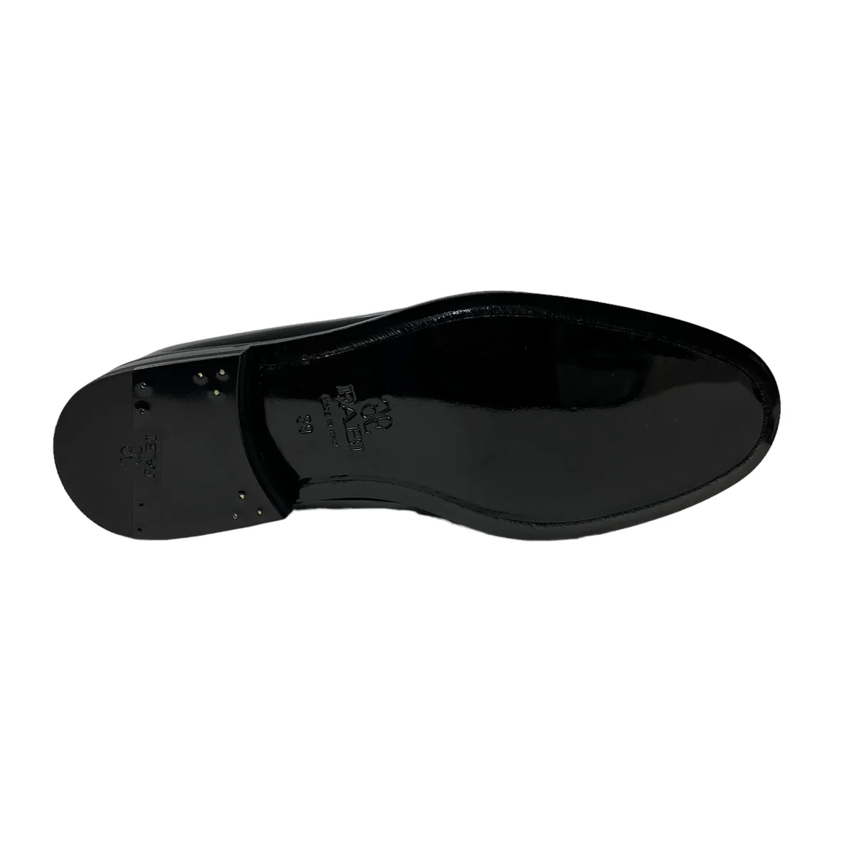 Stile formale e metropolitano per il nostro classico mocassino realizzato in pregiato vitello, completato da un importante fondo in cuoio. Colore: Nero Materiale: Vernice Vitello