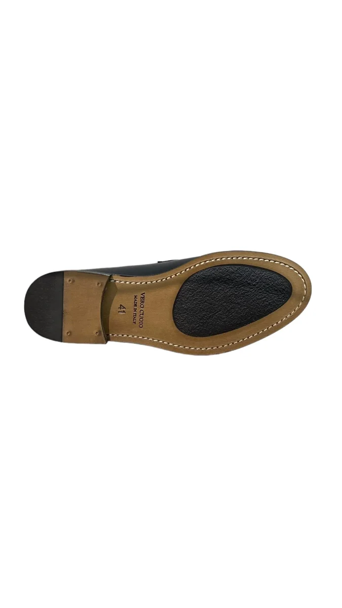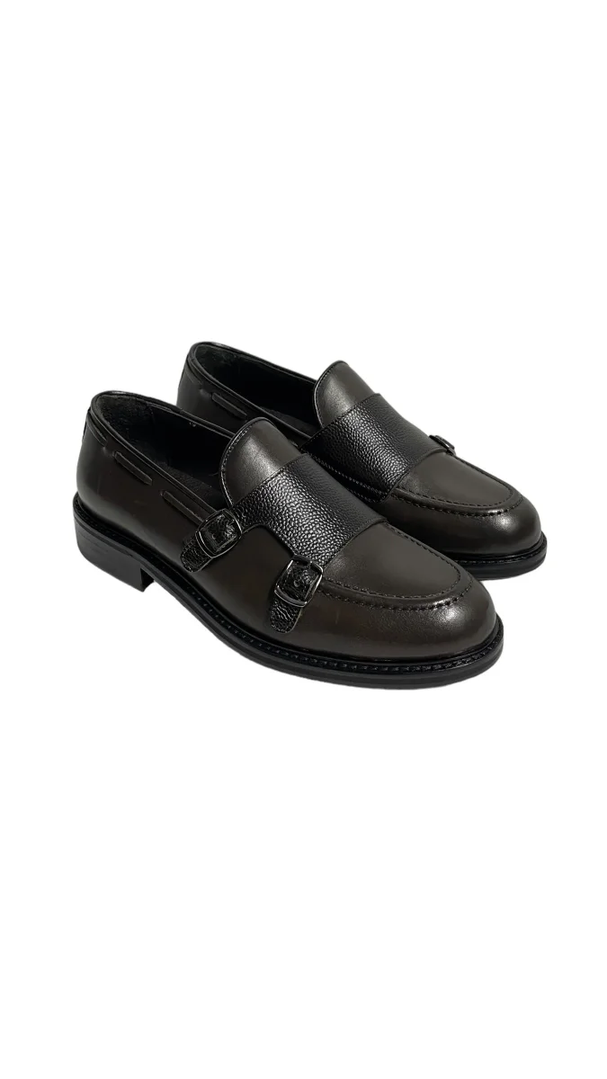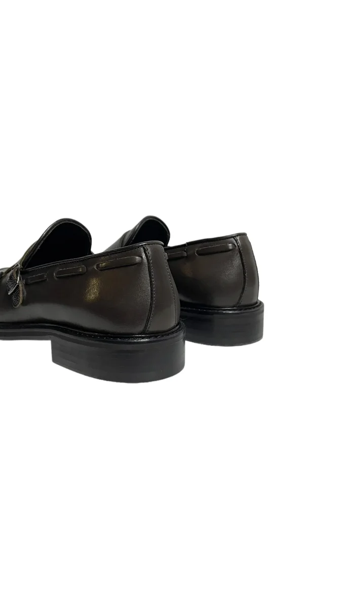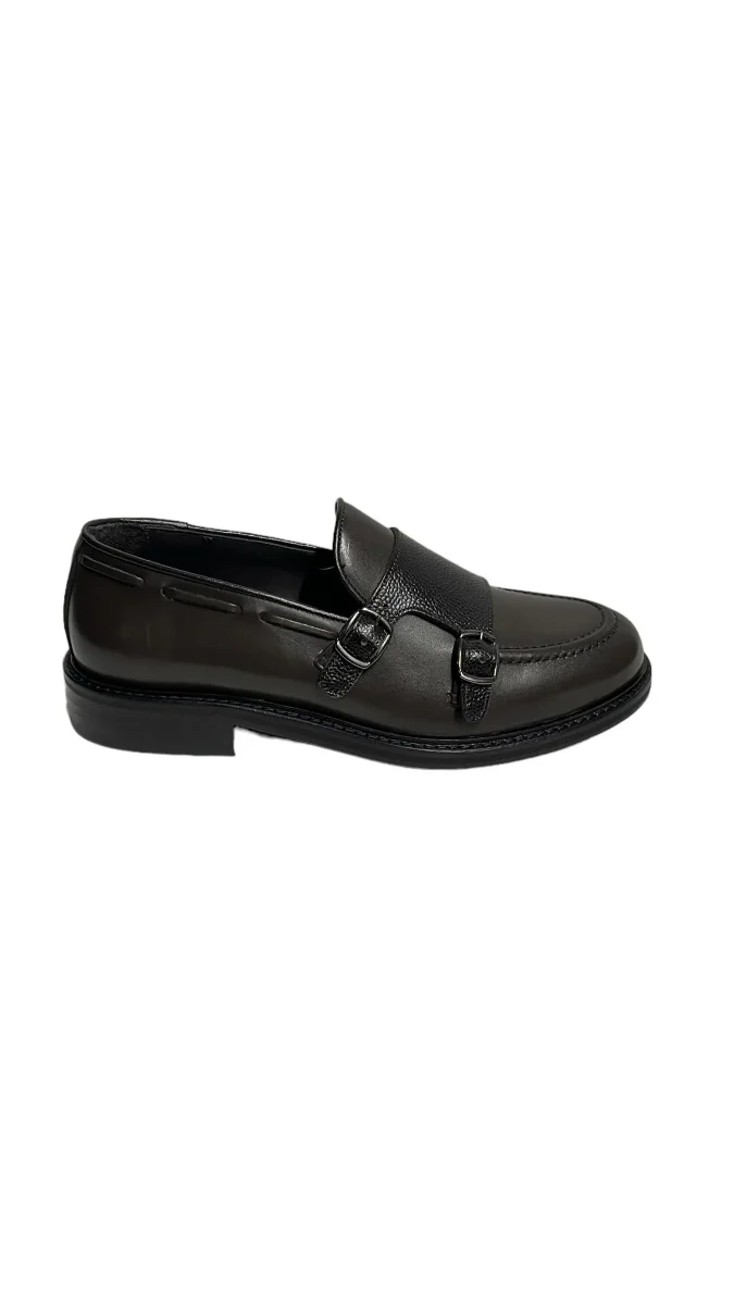 Mocassino doppia fibbia in pelle crust t.moro con fondo cuoio