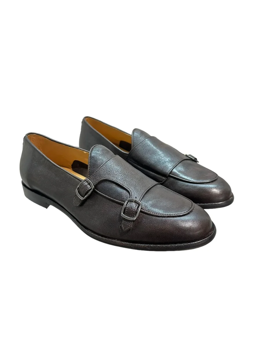 Mocassino doppia fibbia in pelle t.moro con fondo gomma