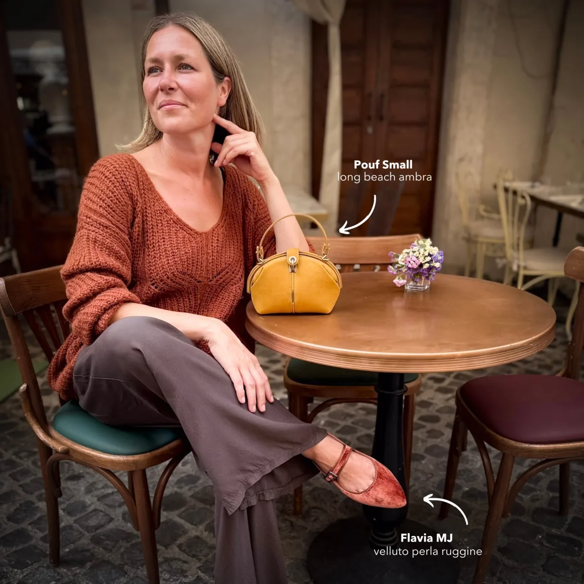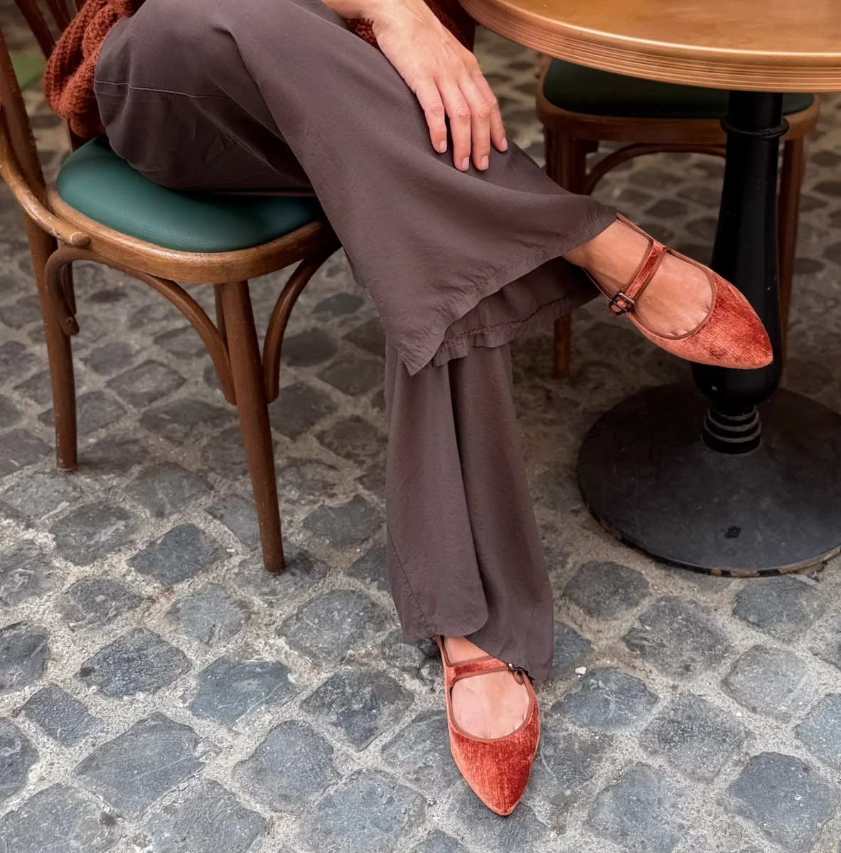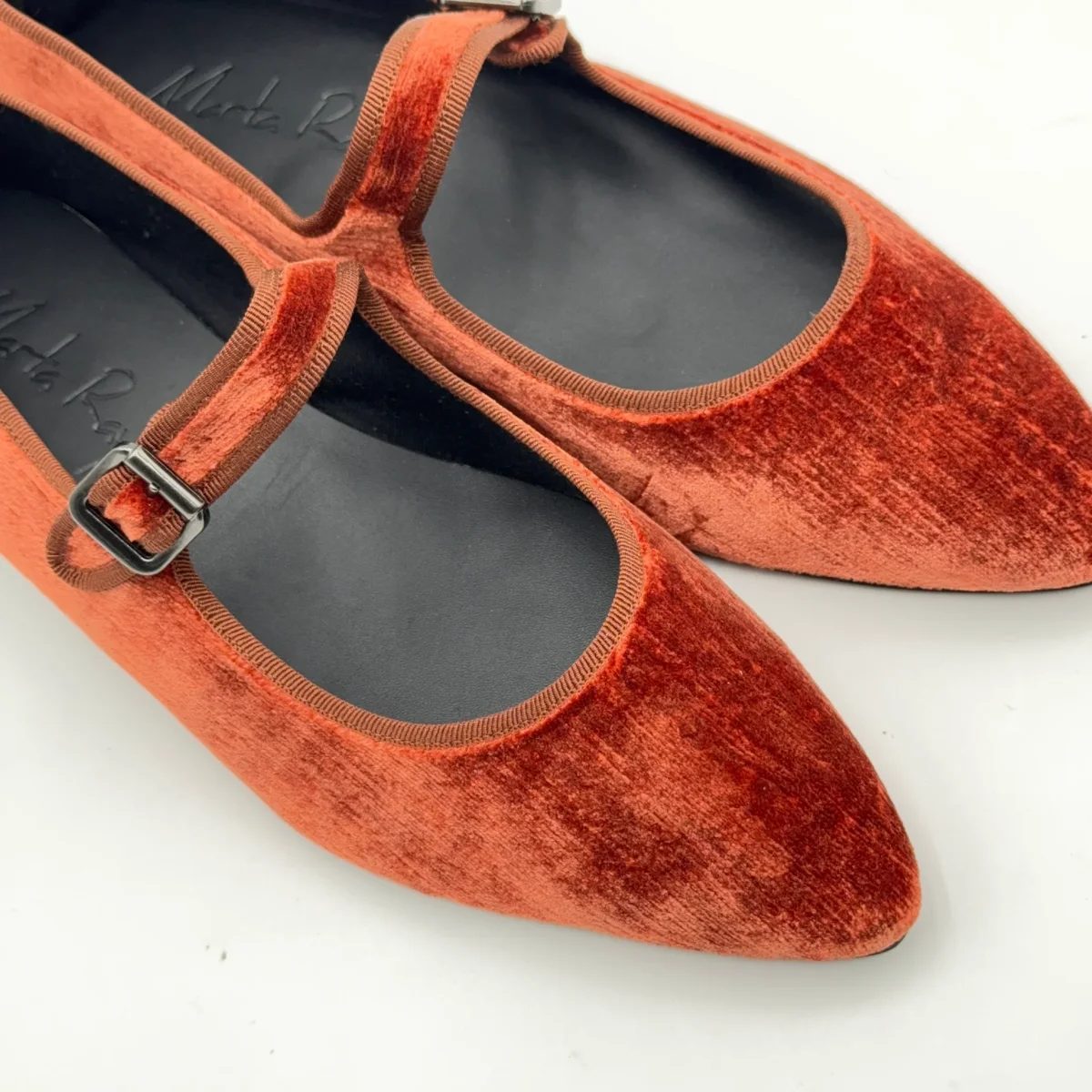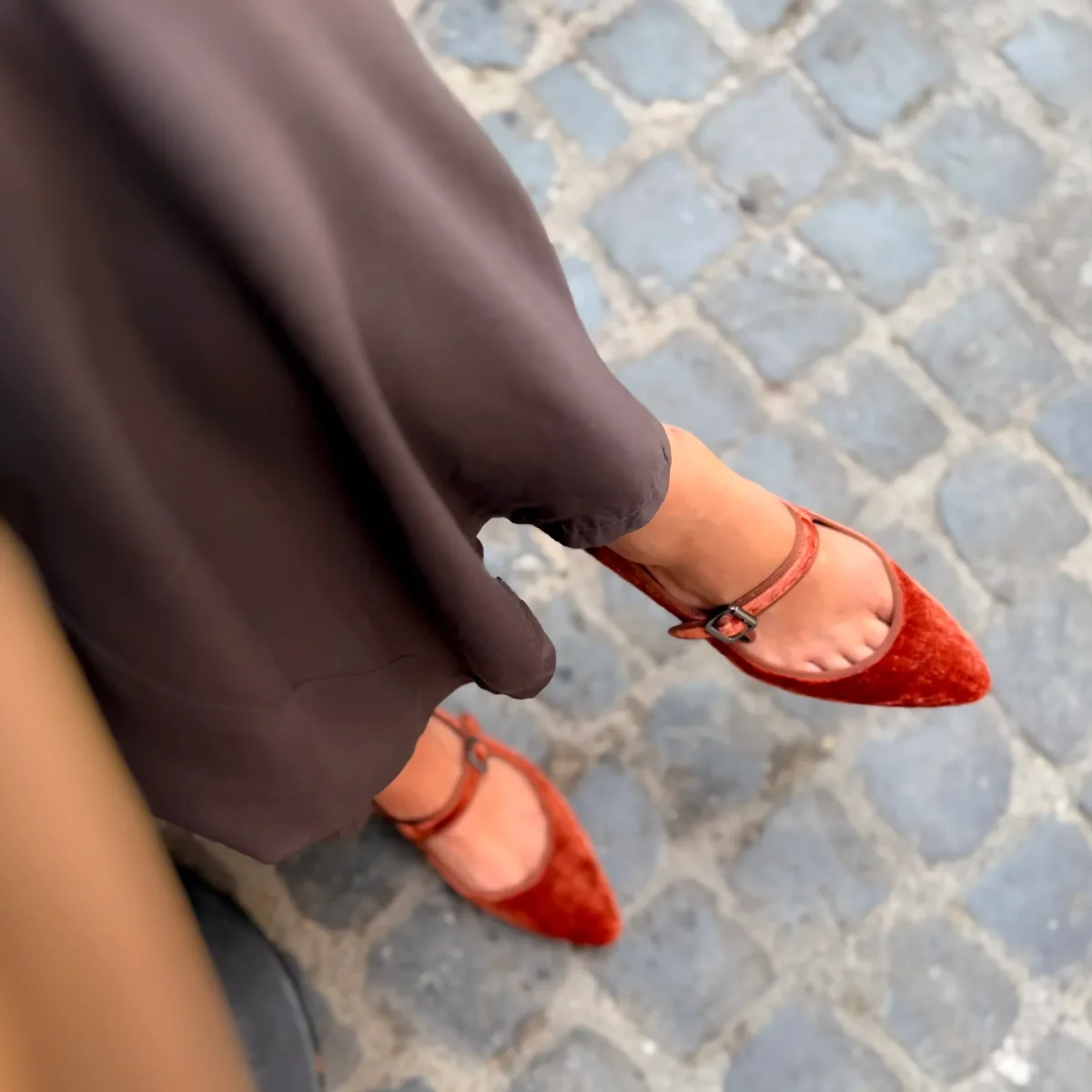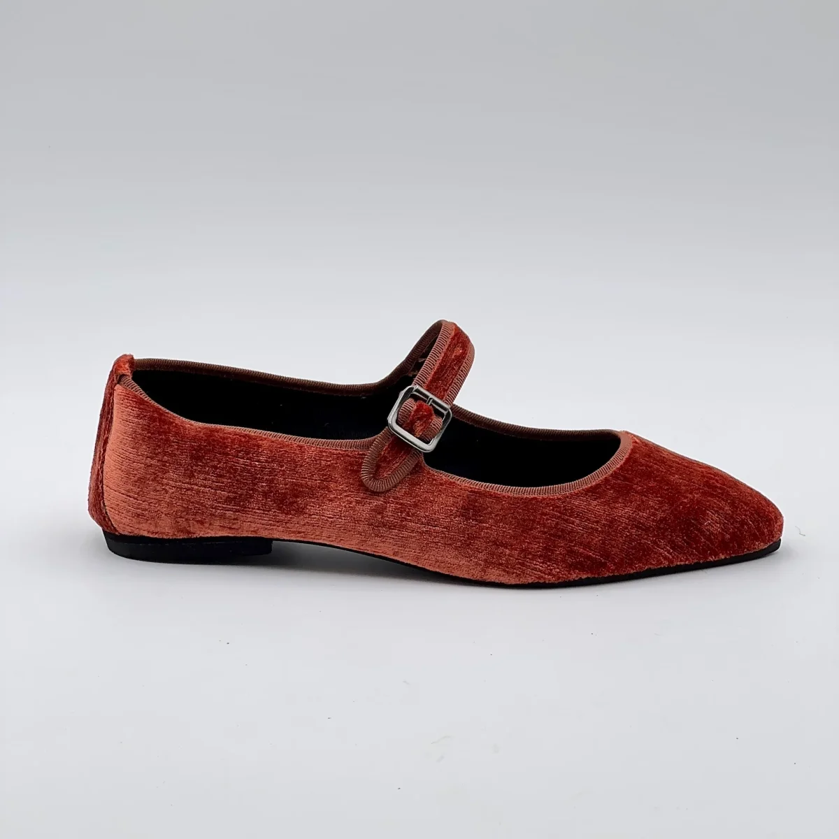 Delicata ma con carattere. Flavia MJ nel colore ruggine unisce la morbidezza del velluto e la forma senza tempo delle mary-jane.