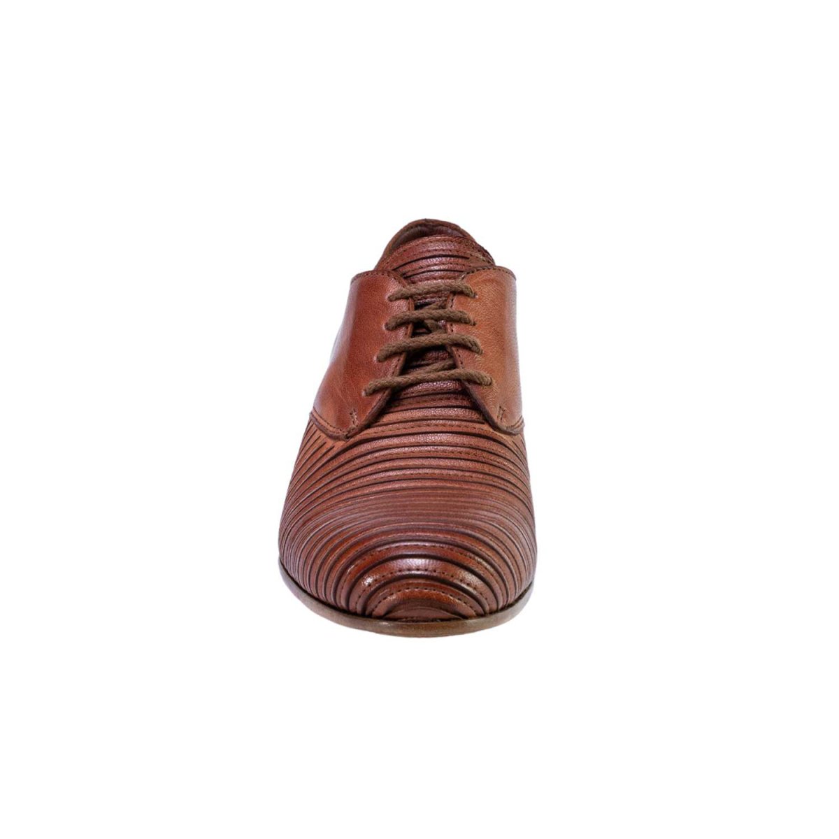 Francesina allacciata in pelle lavorata e trattata artigianalmente presentata con delle incisioni laser sulla tomaia che rendono la calzatura unica nel suo genere e ideale per chi è alla ricerca di una calzatura decisamente diversa senza dover rinunciare al prestigio e alla qualità dell’artigianato italiano. La suola è interamente in cuoio con degli inserti in gomma antiscivolo che rendono la scarpa ottimale anche sul bagnato.