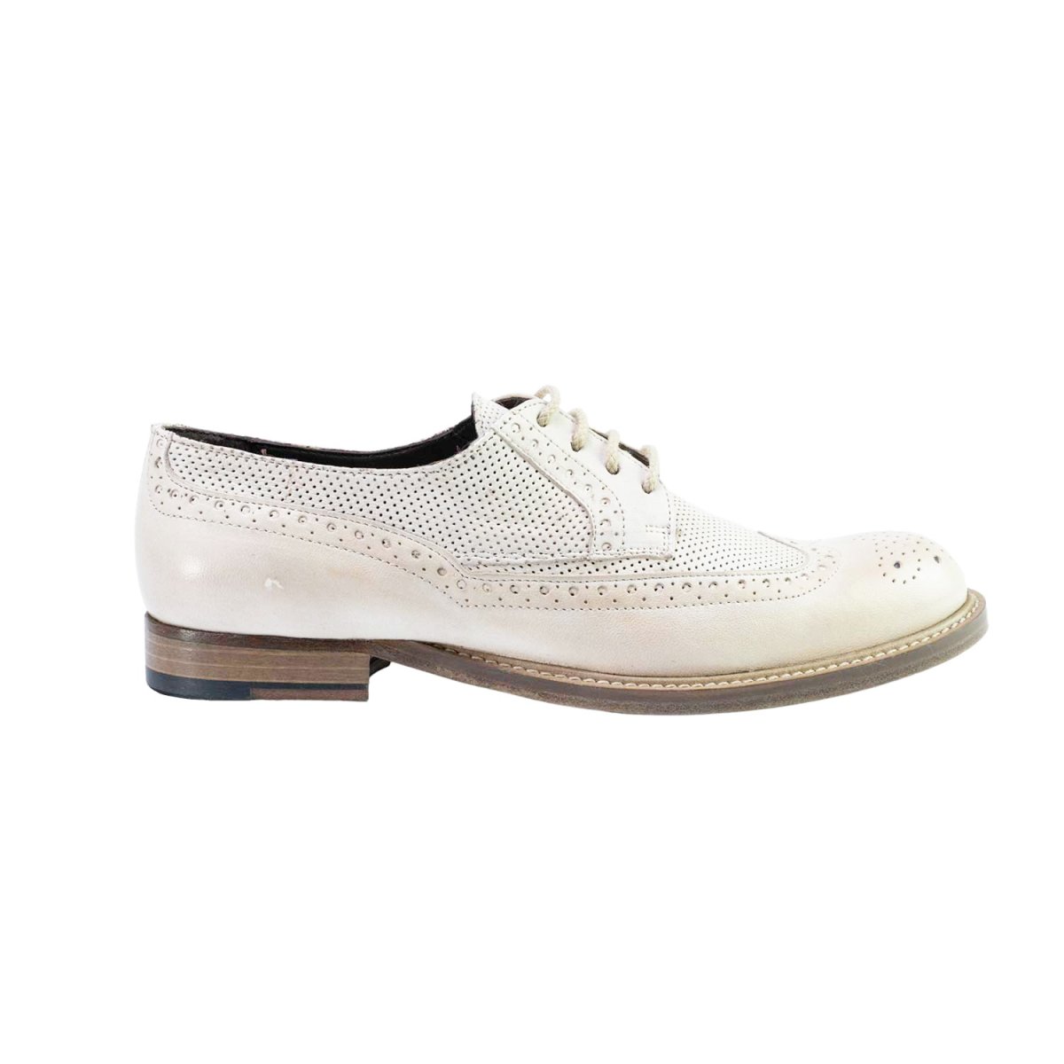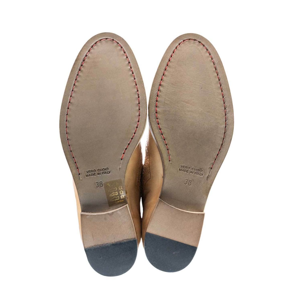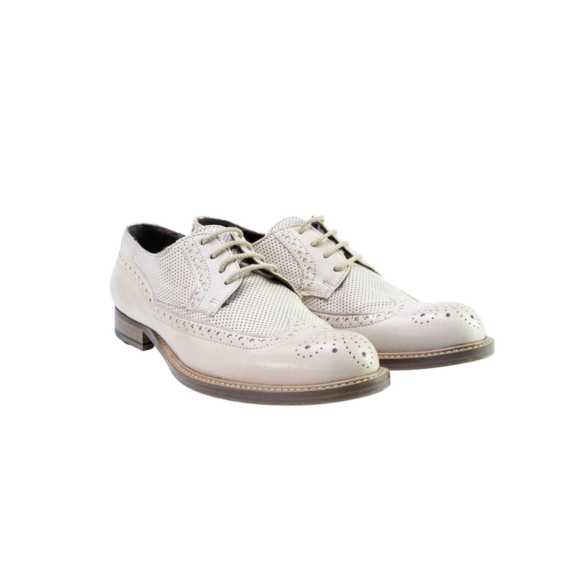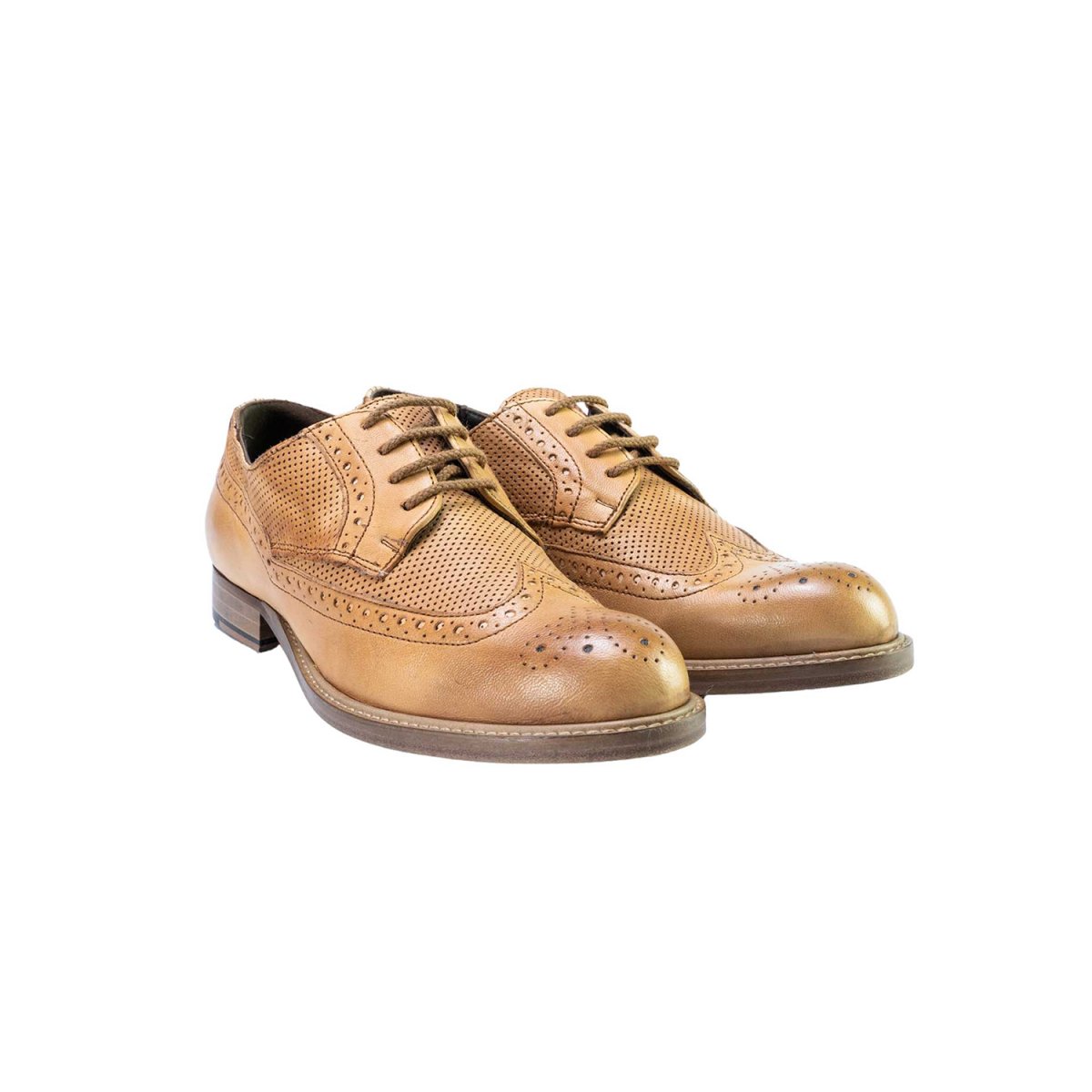 Francesina allacciate in pelle trattata e colorata artigianalmente presentata con una lavorazione all’inglese sulla tomaia che rendono la calzatura molto elegante e ideale per chi è alla ricerca di una calzatura classica senza però dover rinunciare al prestigio e alla qualità dell’artigianato italiano. Si adatta bene sia in ambiti lavorativi o più formali che per la classica passeggiata in centro città. La suola è interamente in cuoio cucito.
