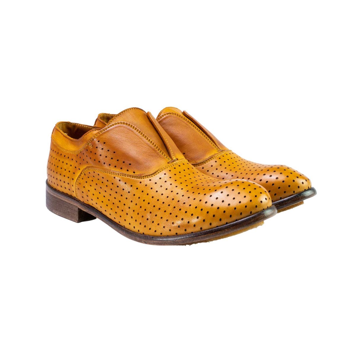 Cod. Fornitore: 6329/1 cod. art. 000671 Francesina in pelle trattata e colorata artigianalmente, viene presentata senza lacci per avere un look unico nel suo genere. Tomaia microforata e foderata internamente quindi l’utilizzo durante eventuali piogge è consentito. Ottima per chi è alla ricerca di una calzatura differente senza dover rinunciare al prestigio e al comfort […]