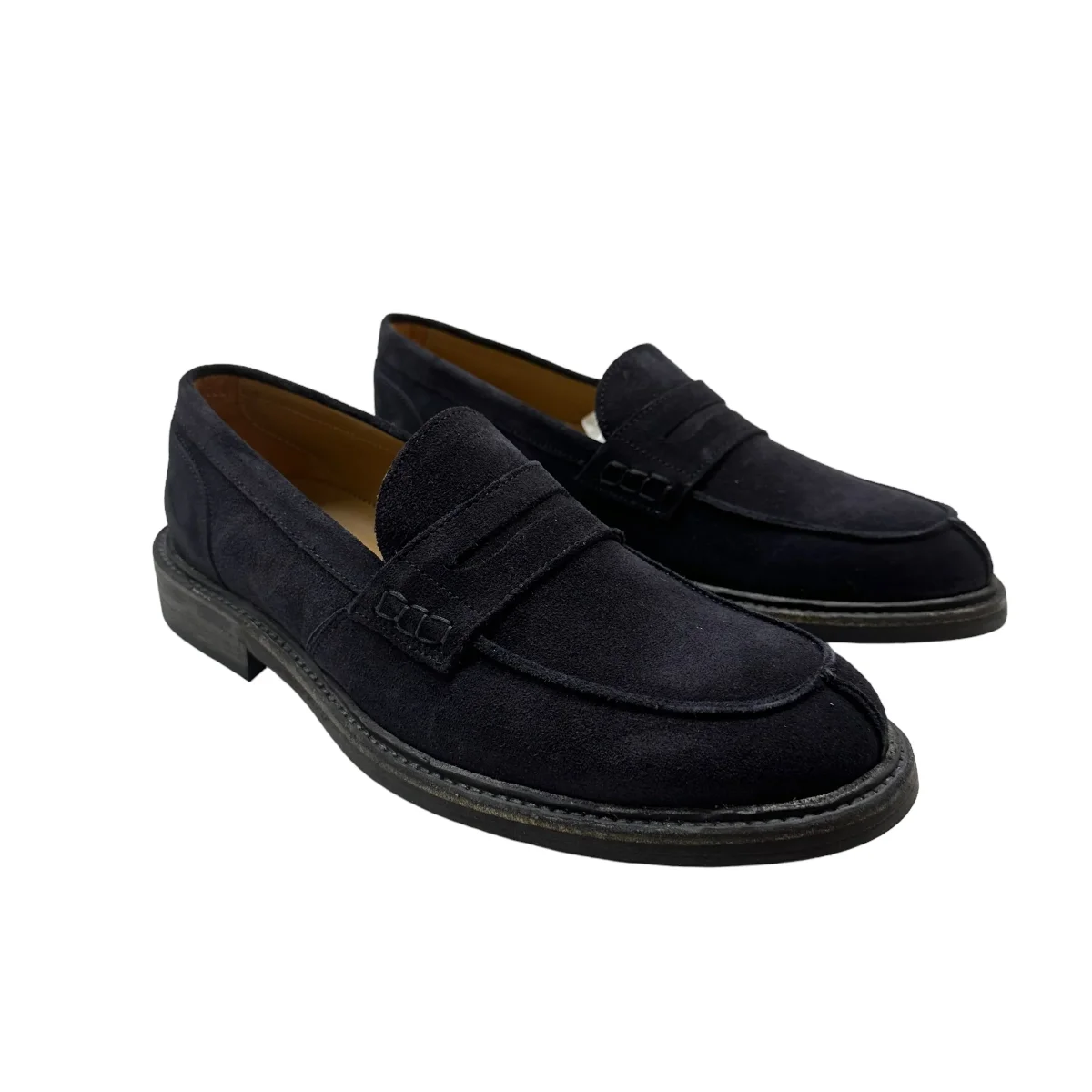 Mocassino Collage un camoscio blu con fondo gomma cucito.