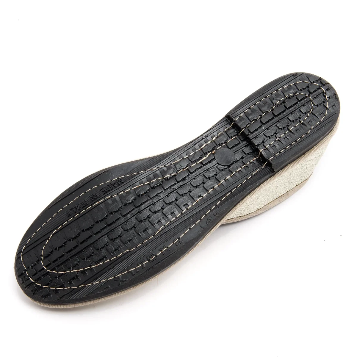 Lavorazione a sacchetto con sottopiede in pelle.