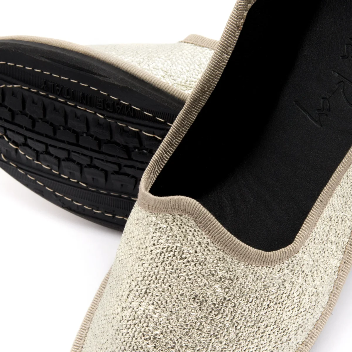 Friulana a punta tonda. Realizzata in stuoia laminata, bordata in contrasto di colore. Lavorazione a sacchetto con sottopiede in pelle. Fondo in gomma antiscivolo. Facili da indossare e da interpretare, ti stupirai quanto questa comoda ciabattina potrà essere un versatile accessorio.