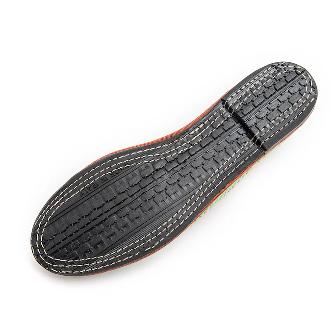 Lavorazione a sacchetto con sottopiede in pelle.