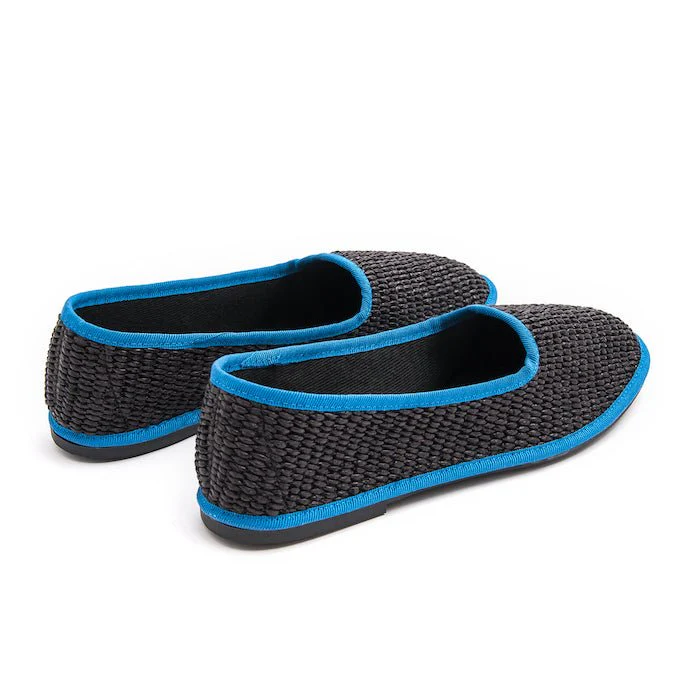 Friulana a punta tonda. Realizzata in rafia intrecciata stuoia, bordata in contrasto di colore. Lavorazione a sacchetto con sottopiede in pelle. Fondo in gomma antiscivolo. Facili da indossare e da interpretare, ti stupirai quanto questa comoda ciabattina potrà essere un versatile accessorio.