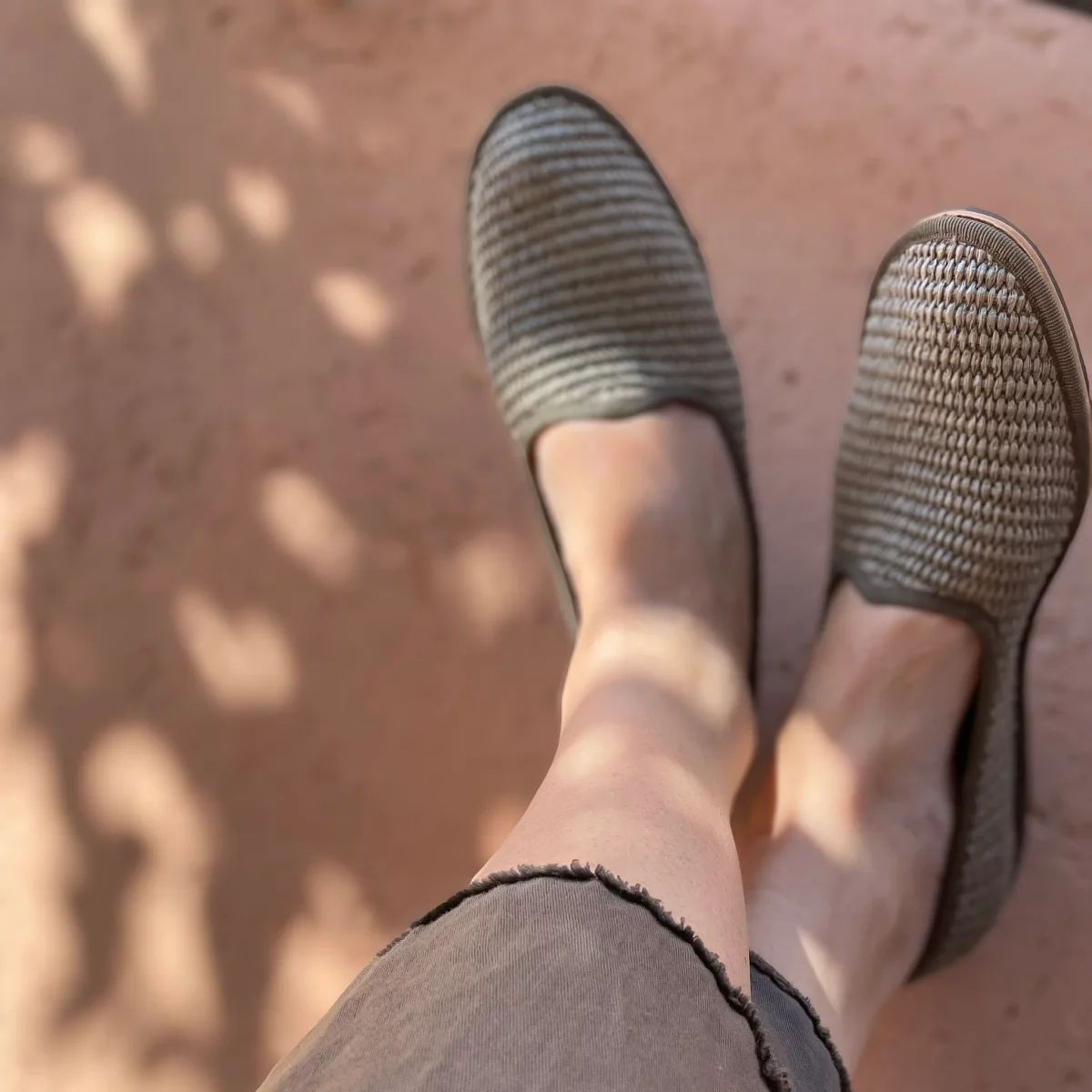 Le friulane firmate Marta Ray sono una reinterpretazione del saper fare toscano – modello a punta tonda, realizzato con lavorazione tradizionale “a sacchetto” che garantisce morbidezza e flessibilità. La versione California è realizzata in rafia color oliva: naturale, opaca e piacevole al tatto.