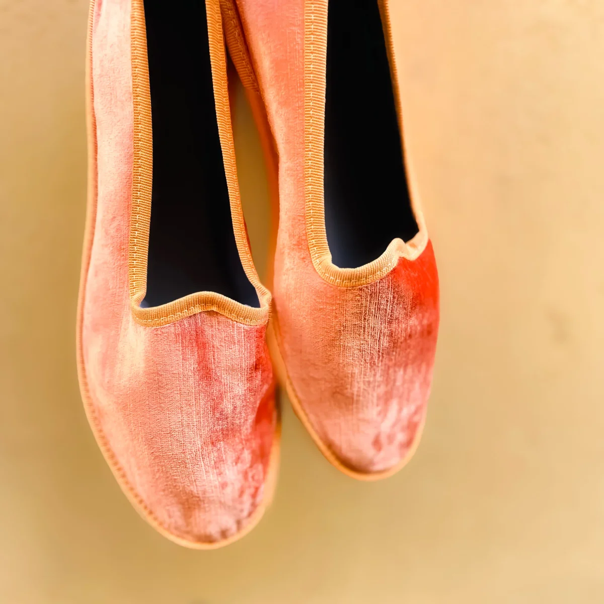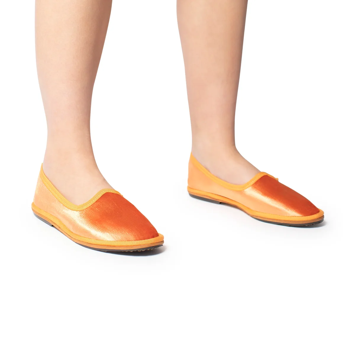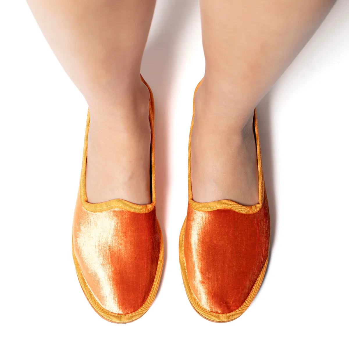 Friulana by Marta Ray “made in tuscany” a punta tonda. Realizzata in velluto perlato. Lavorazione a sacchetto con sottopiede leggermente imbottito in pelle. Fondo originale in cuoio combinato con rinforzi in gomma antiscivolo cuciti.