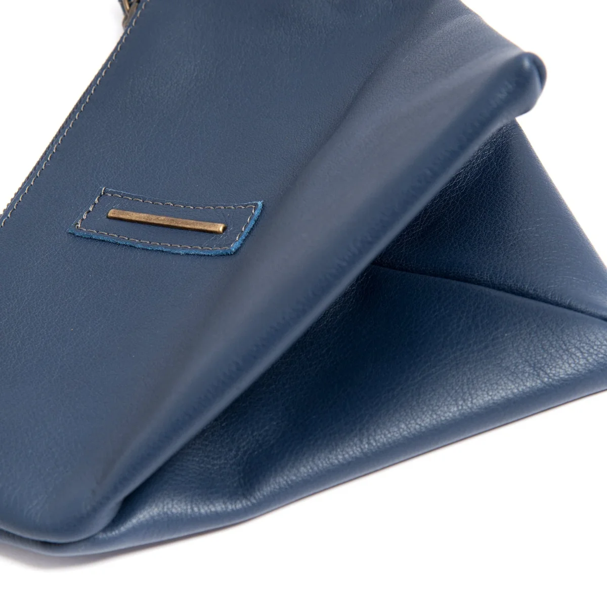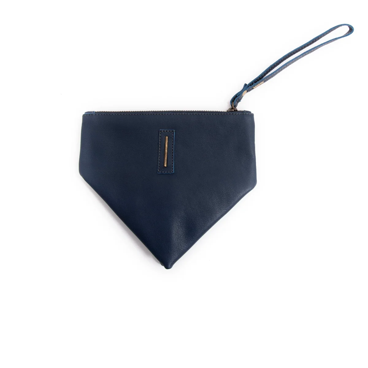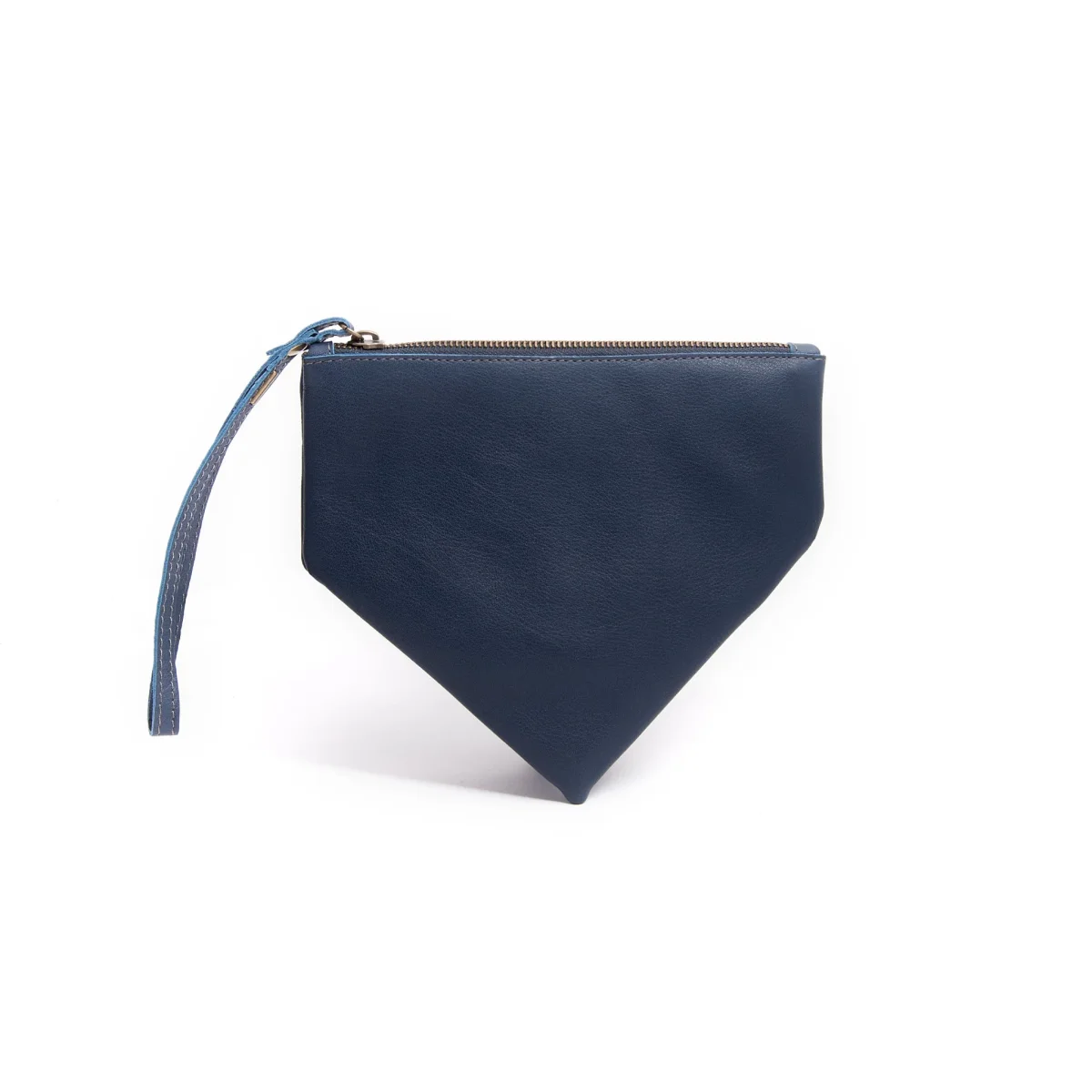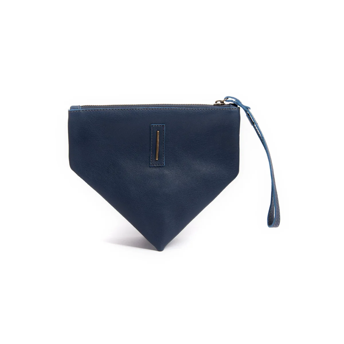 Borsellino Small. Gigi è un accessorio dalla forma triangolare asimmetrica che contiene il necessario da portare sempre con te. Foderato e con la chiusura a zip, si porta comodamente al polso.