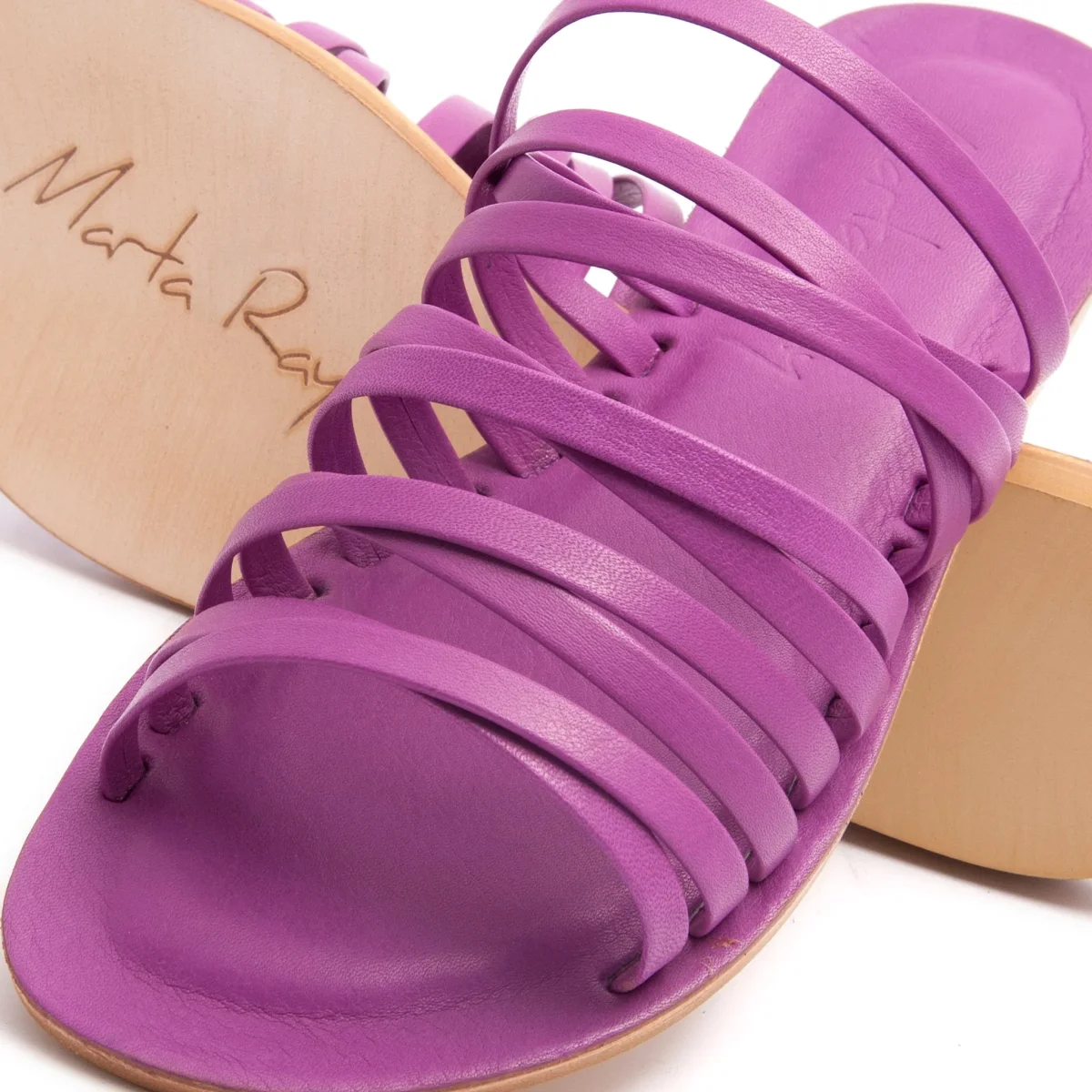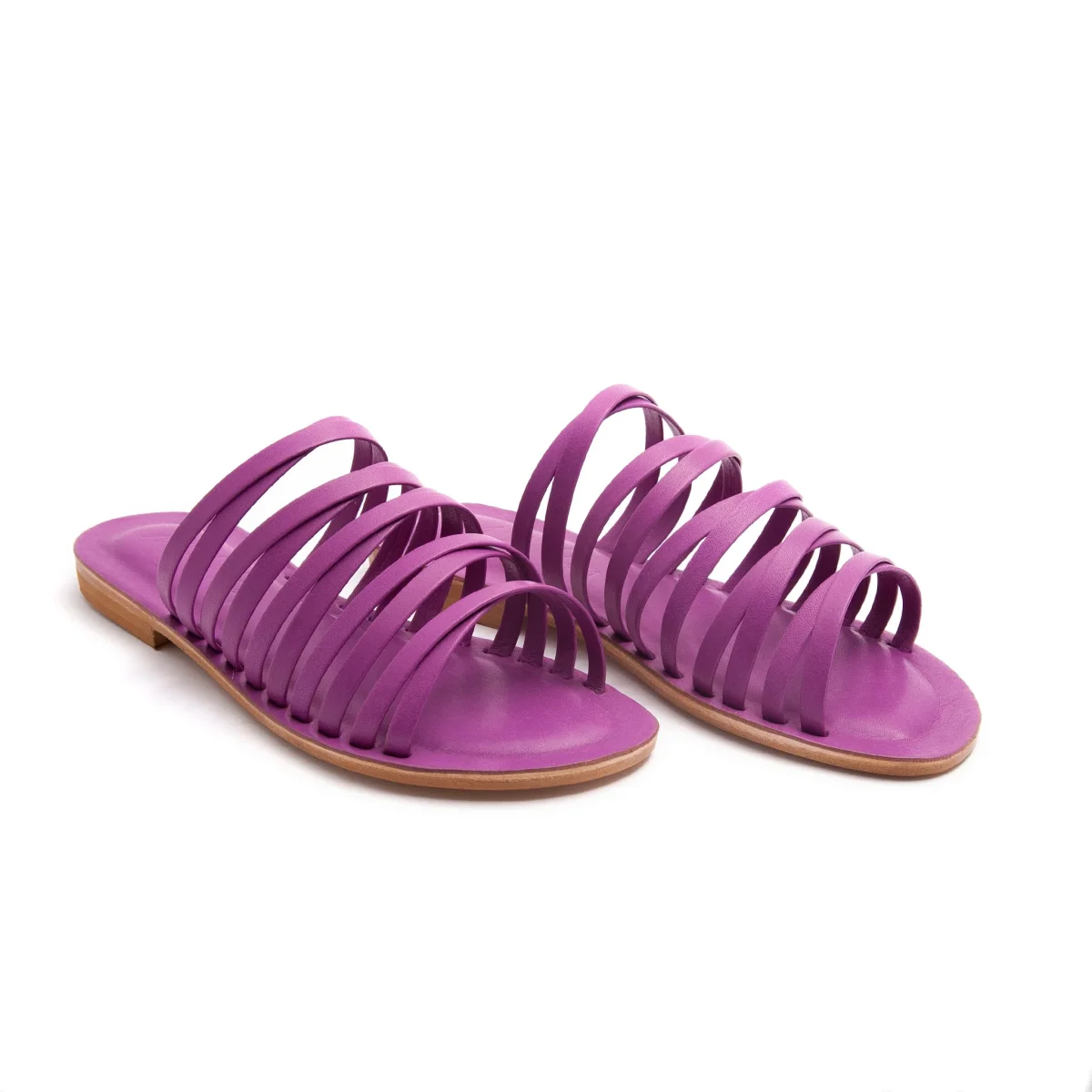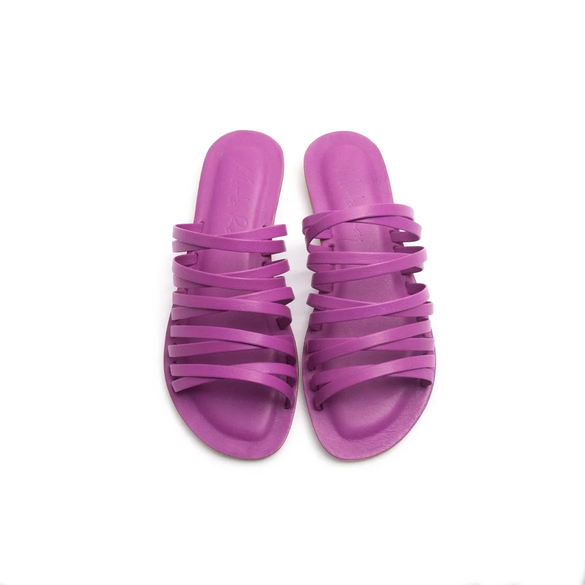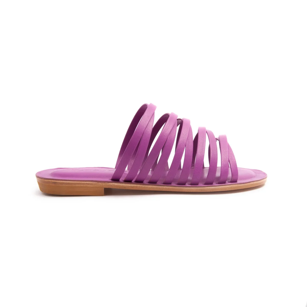 Ginger è formato da tanti listini, realizzati in pelle pieno fiore ripiegata, montati a mano in ordine apparentemente sparso. Fascia e trattiene molto bene il piede. Il fondo è in cuoio. Il sottopiede in pelle è leggermente imbottito. Altezza tacco 1 cm.