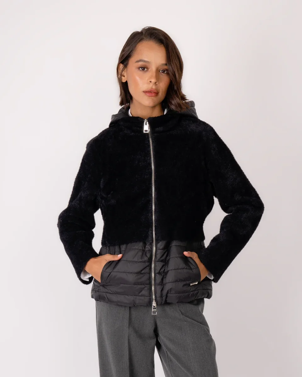 - Dettagli: chiusura a zip con cappuccio