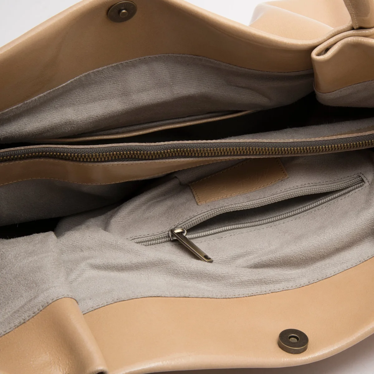 Grace è una borsa con carattere, molto spaziosa e dall’aspetto sartoriale in pelle morbida e leggera .
