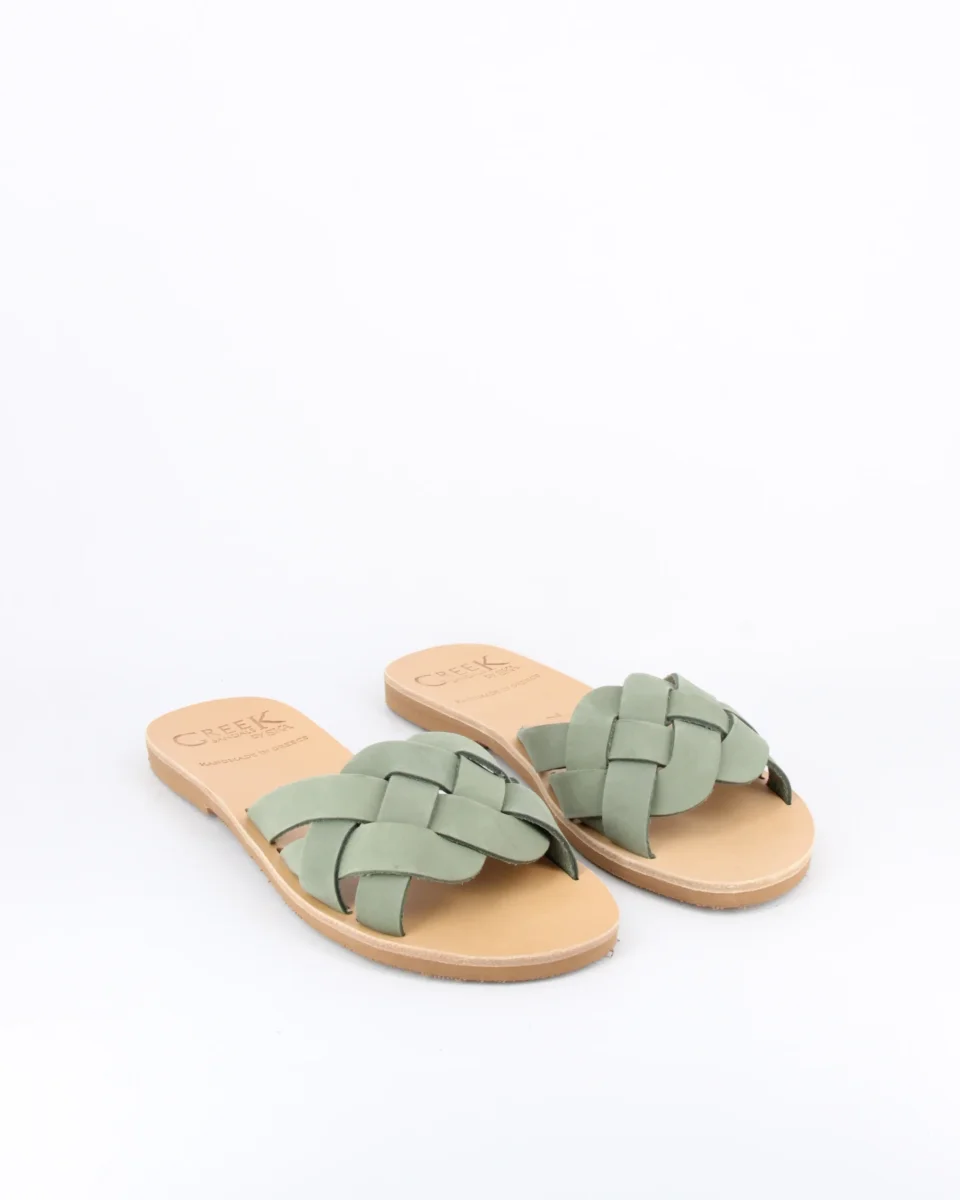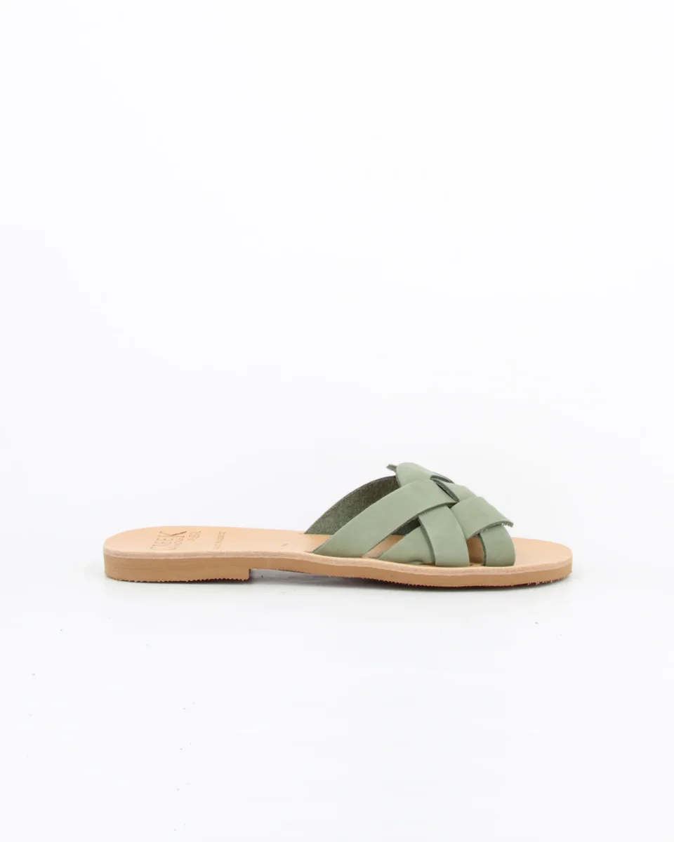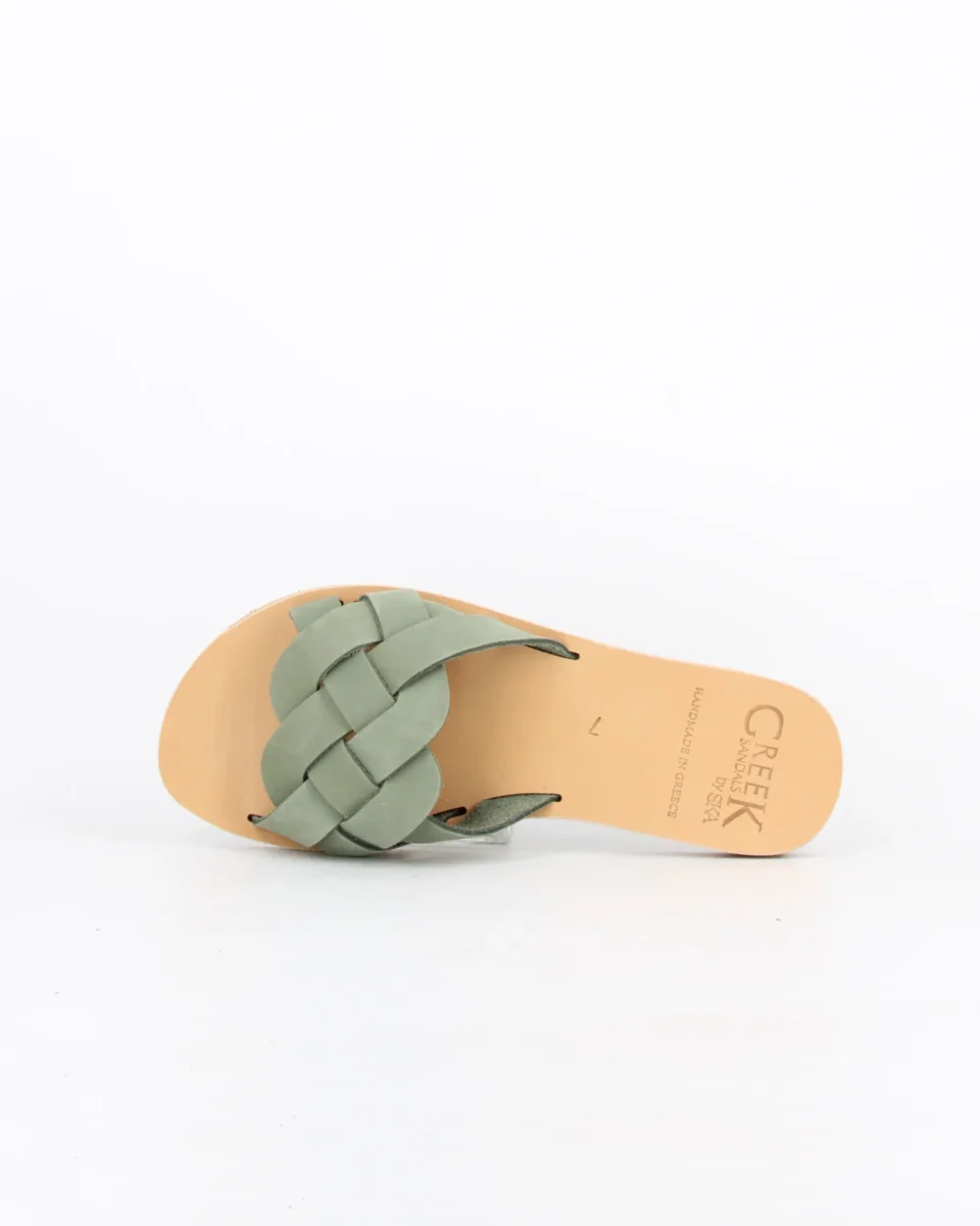 KOS sandalo realizzato a mano in pelle intrecciata e sottopiede in cuoio. KOS è un sandalo realizzato a mano da esperti artigiani greci il sottopiede è in cuoio e la suola è in micro.