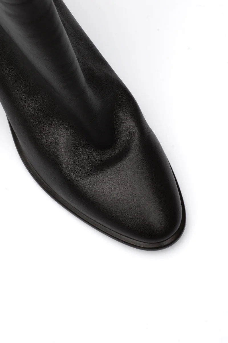 Un design essenziale e contemporaneo che conquista per la sua linea pulita. Questo tronchetto è realizzato in morbida nappa T.moro effetto guanto , senza rinforzi, per un look naturale e una calzata avvolgente che segue il piede con eleganza. La suola leggermente pronunciata , dettaglio che dona carattere e un’allure più grintosa, bilanciata dal tacco largo rivestito in cuoio t.moro , che assicura stabilità e comfort. La zip posteriore completa il modello, rendendolo pratico e mantenendo una silhouette minimal e sofisticata. Perfetto da indossare con abiti midi, pantaloni cropped o denim, è il tronchetto versatile e chic che non può mancare nel guardaroba di stagione.