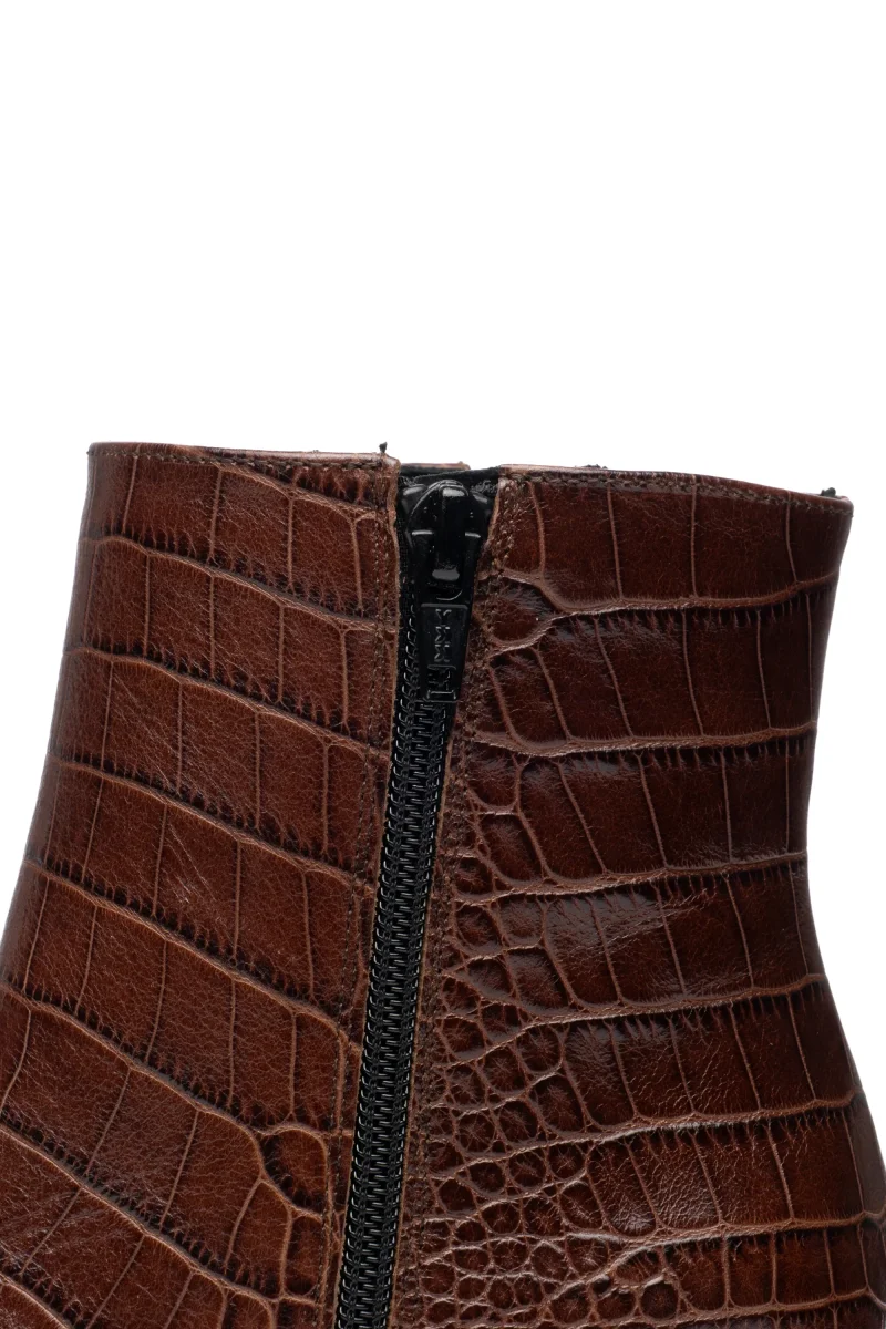 Tronchetto donna con zip interna e fondo monoblocco , realizzato in cocco bruciato, un marrone rossiccio dalle sfumature calde. Il tacco largo da 70mm garantisce stabilità e comfort, mentre la punta leggermente squadrata e le linee pulite donano contemporaneità. Un modello versatile ideale per completare con stile i tuoi look!