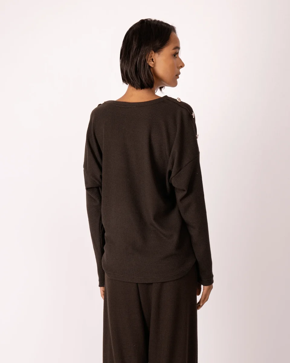 Moderna e ricercata: questa maglia con scollo a barca è un capo raffinato e versatile, perfetto per i mesi più freddi. Perfetta da indossare sia in contesti casual che in situazioni più eleganti, unisce comodità e stile in un’unica soluzione. Un pezzo versatile che dona carattere senza bisogno di accessori eccessivi.