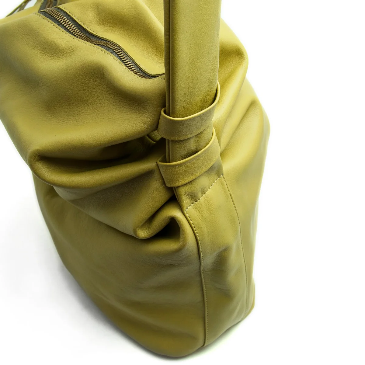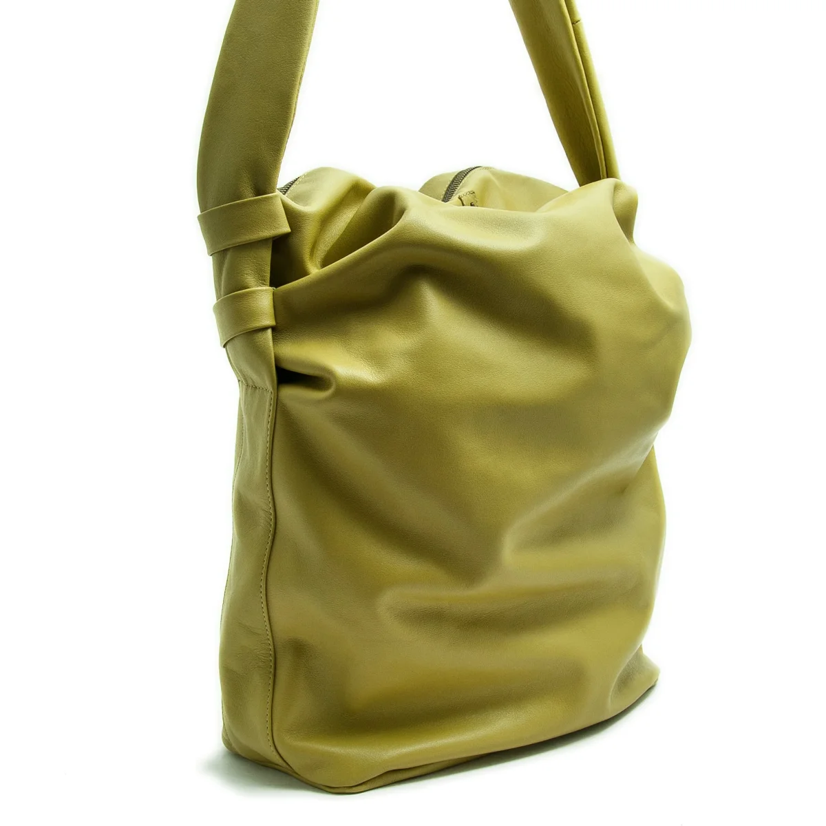 Borsa morbida a tracolla in pelle. Mandy varia a seconda di quanto la vorrai riempire. Può essere piccola ma anche molto capiente, sviluppandosi in altezza grazie alla tracolla che scorre lungo i passanti laterali. La sua tracolla è un tubolare largo che si appoggia comodamente sulla spalla. Chiusura con zip e fodera in microfibra chiara. […]