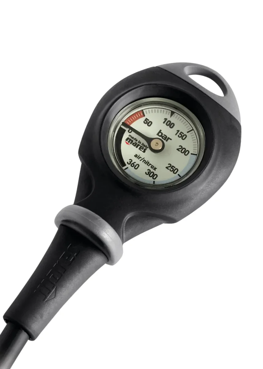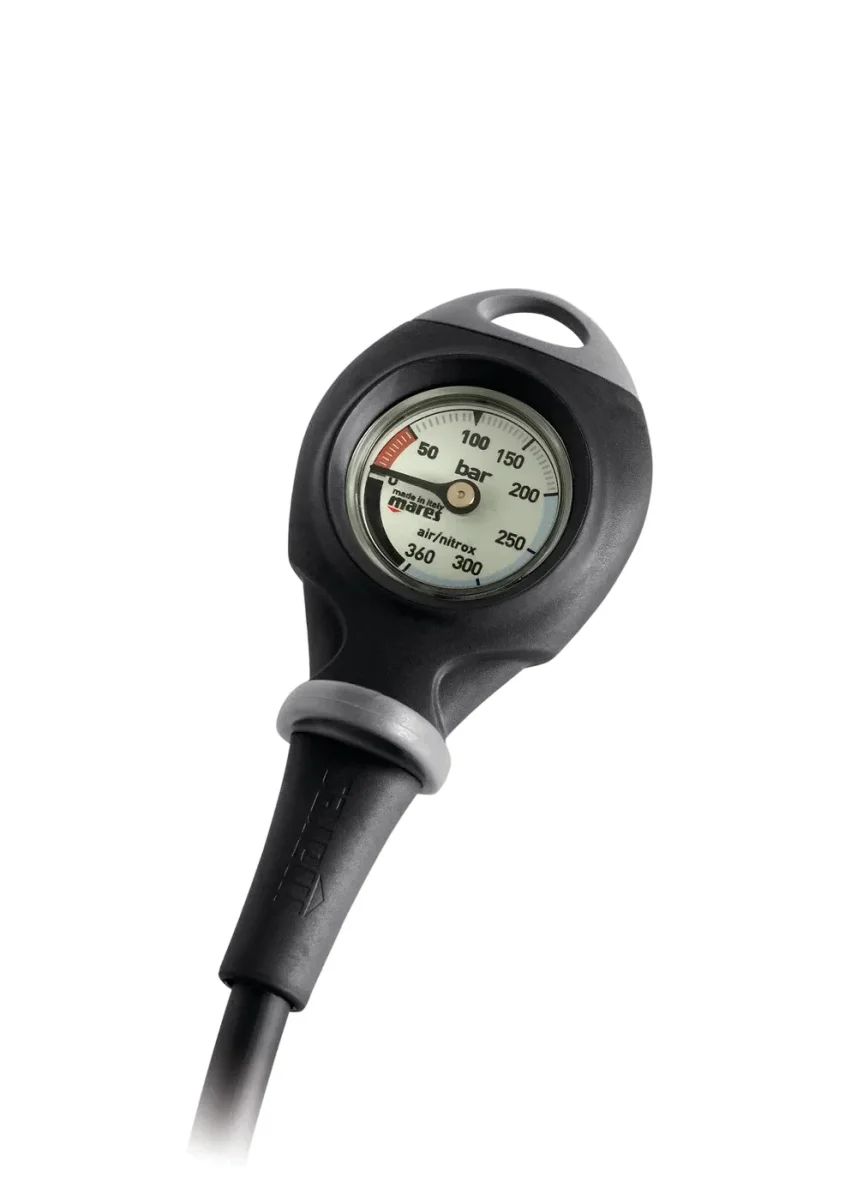 Il modello base della nuova linea di strumenti Mares è il manometro metallico Mission 1, adatto a una pressione di 300 bar e integrato in una cassa in materiale plastico antiurto.