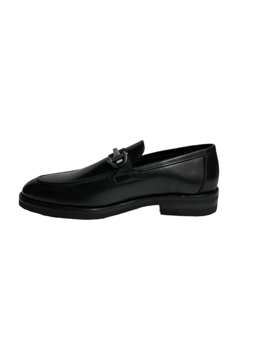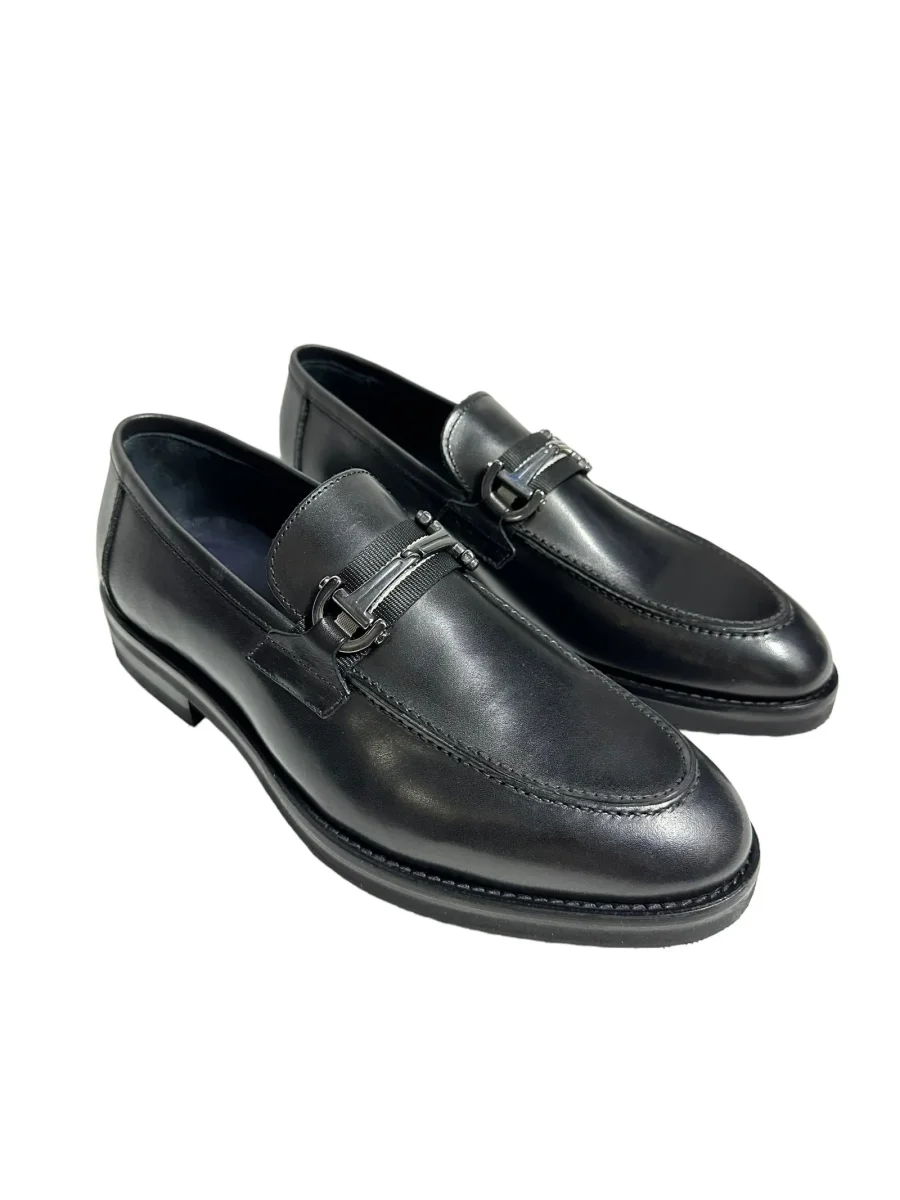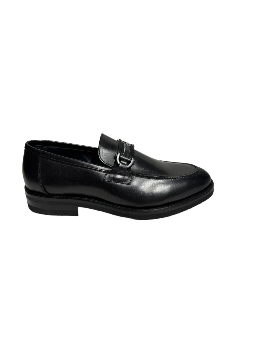 Mocassino in pelle nero con accessorio , fondo in gomma cucito