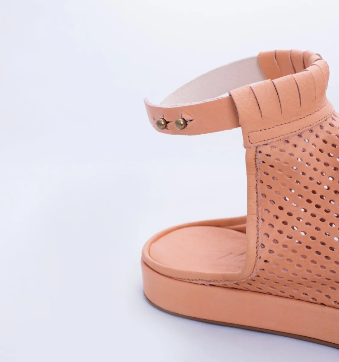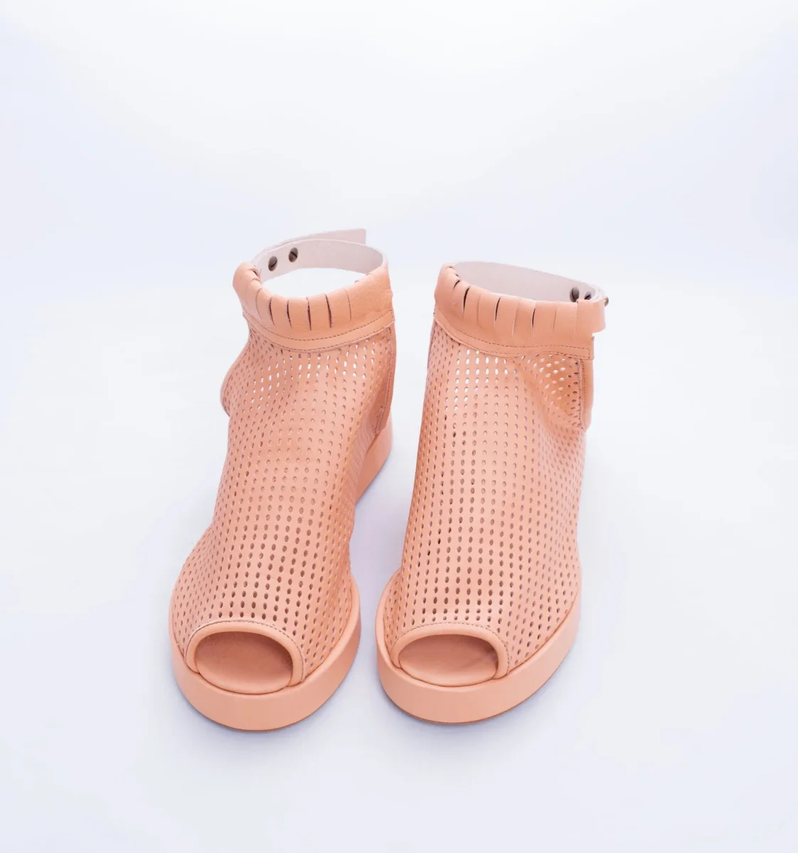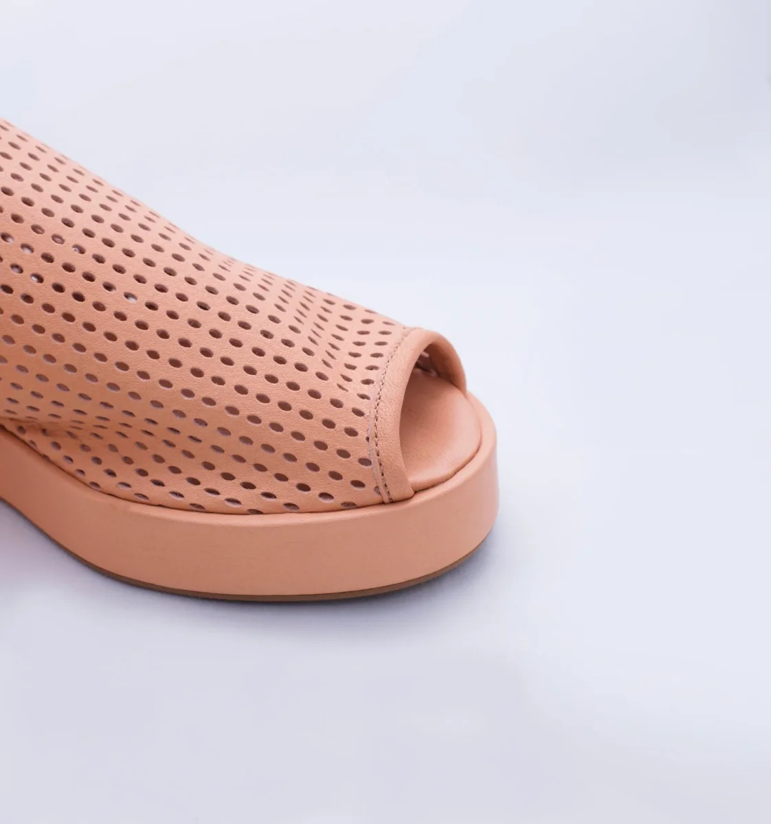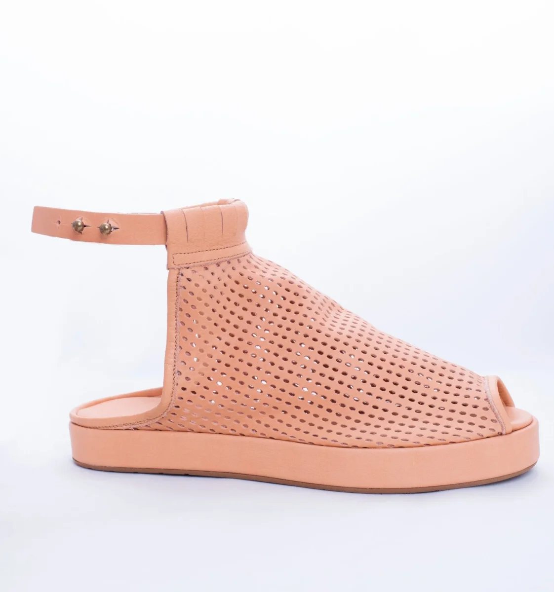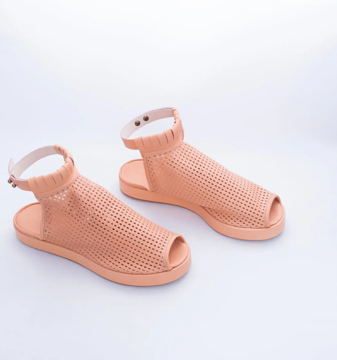Mati è una scarpa open toe con tomaia in morbida pelle traforata a laser con cinturino regolabile. Il fondo in fussbett, rivestito in pelle, è leggero ed ergonomico. Il fondo è in gomma antiscivolo.