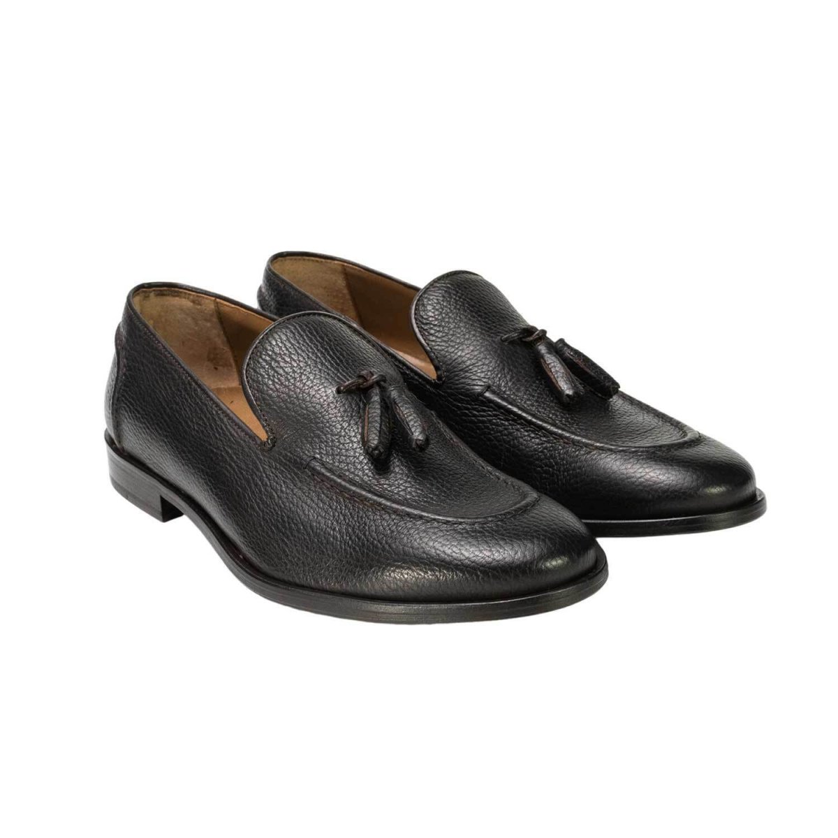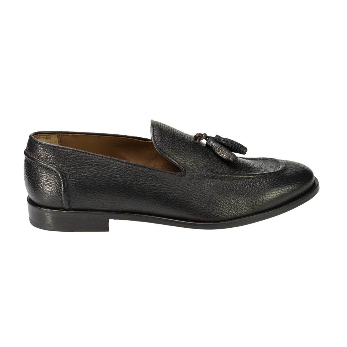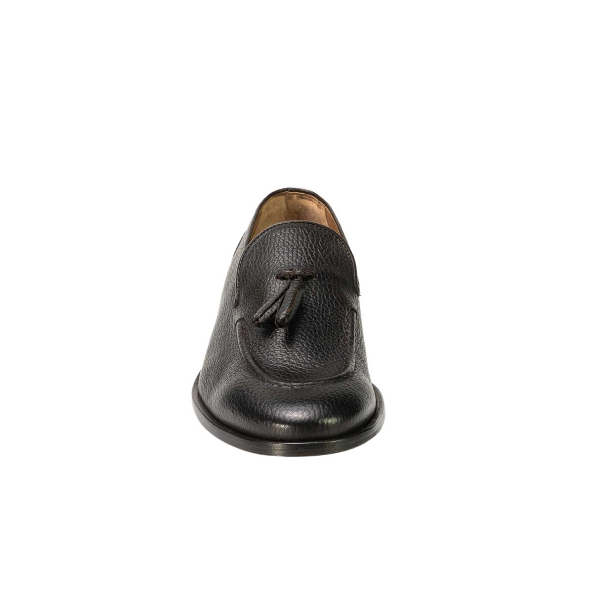 Cod. Fornitore: 1013-5 cod. art. 000291 Mocassino lavorato e tamponato artigianalmente, una volta trattato il pellame viene martellato per avere una texture unica e diversa. Presenta delle nappine che danno uno stile casual su una forma classica. La suola è in cuoio. Disponibile in testa di moro (TDM)