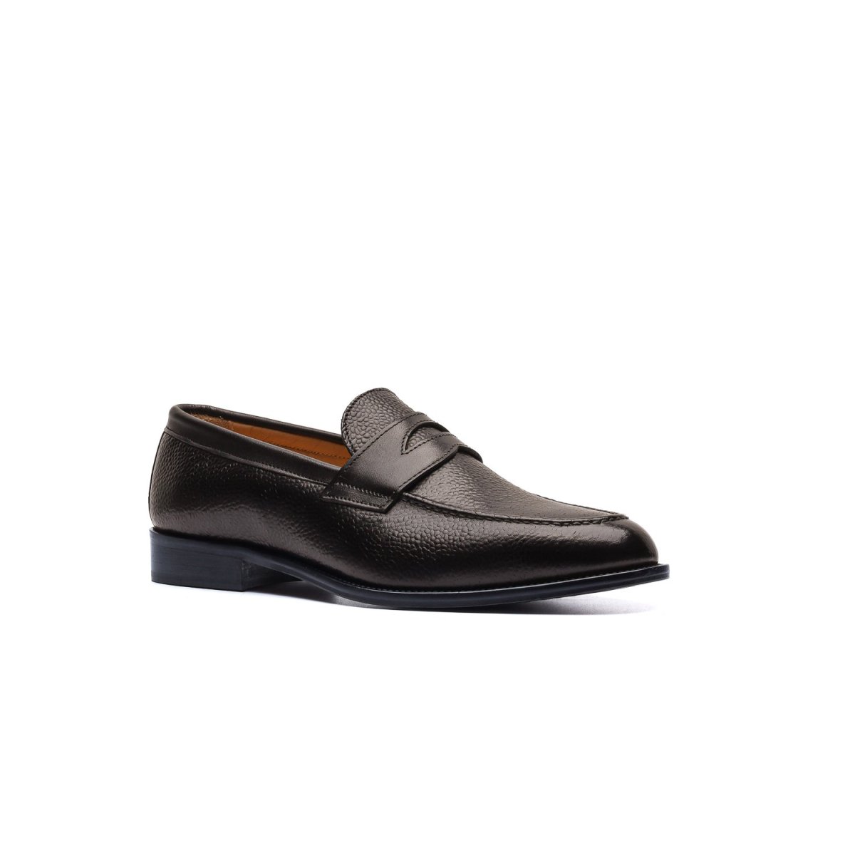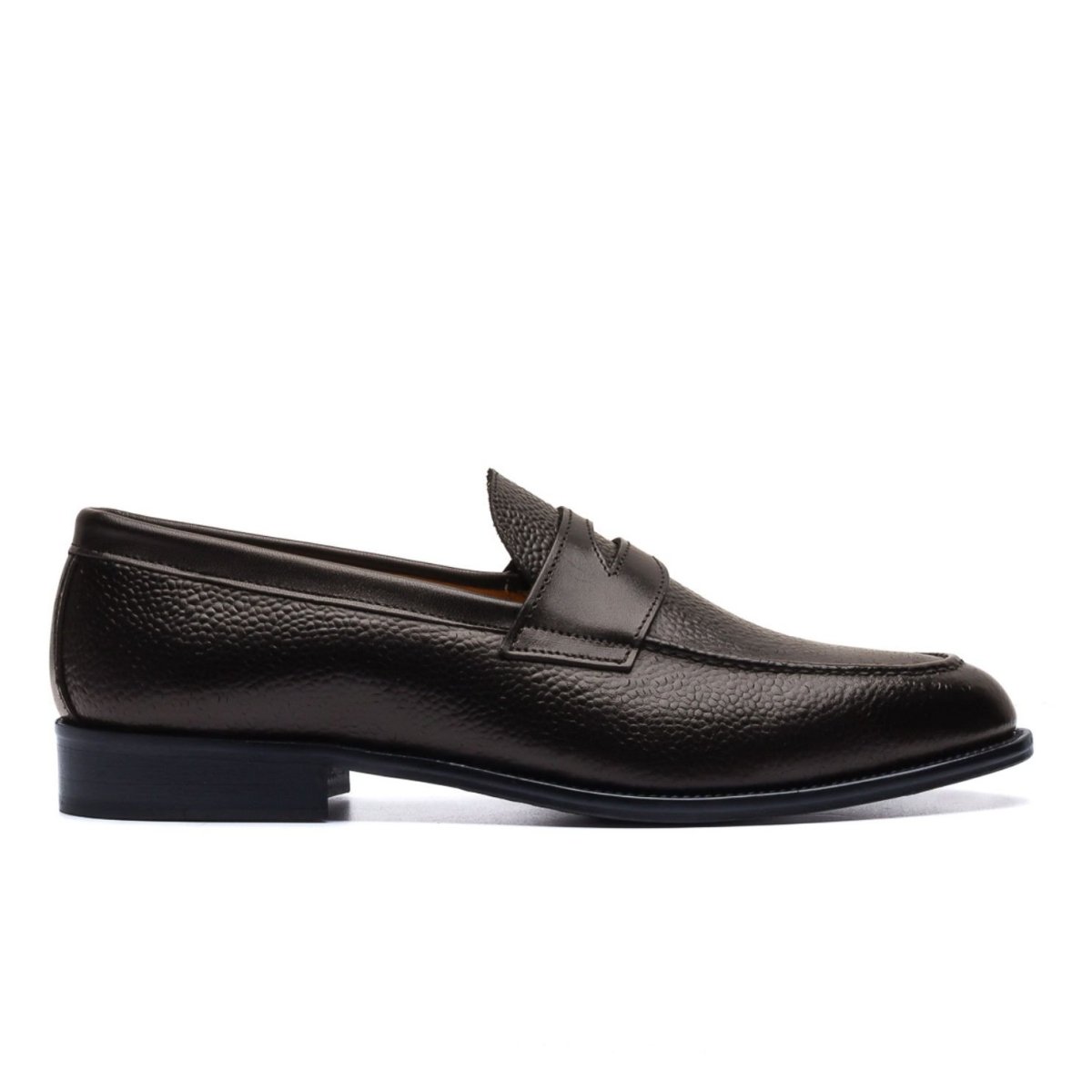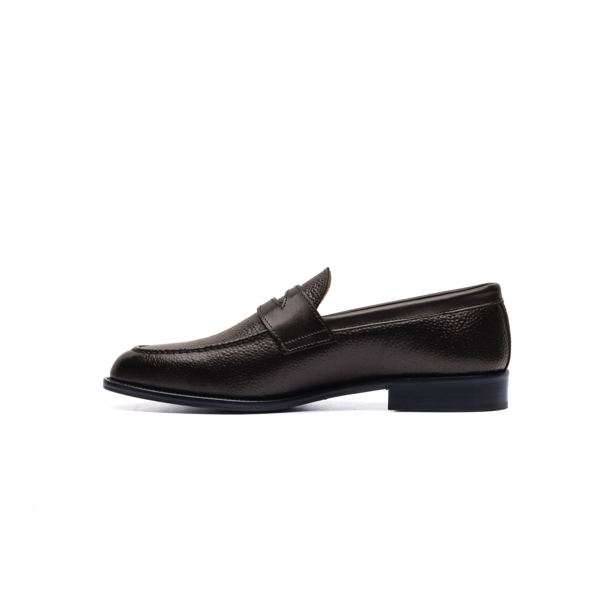 Calzature artigianali Made in Italy modello Penny Loafer o più comunemente conosciute come “Mocassini Penny”. Realizzate in pelle di vitello lavorata con motivo a chicco di riso tinta nel colore testa di moro, sulla parte frontale della tomaia è applicata l’iconica mascherina tono su tono. Interno foderato in pelle beige con logo stampato nel colore oro. La suola è in cuoio lavorata a blake, tinta a mano nel colore marrone. Tacco applicazione di gomma anti-scivolo. Un classico dalla struttura eccezionale, indossali con dei pantaloni sartoriali o chinos slim fit. Questa calzatura realizzata a mano unisce storia, eleganza, comfort e robustezza…