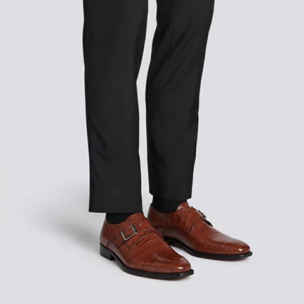 Monk Strap Single Buckle with Crocodile Print