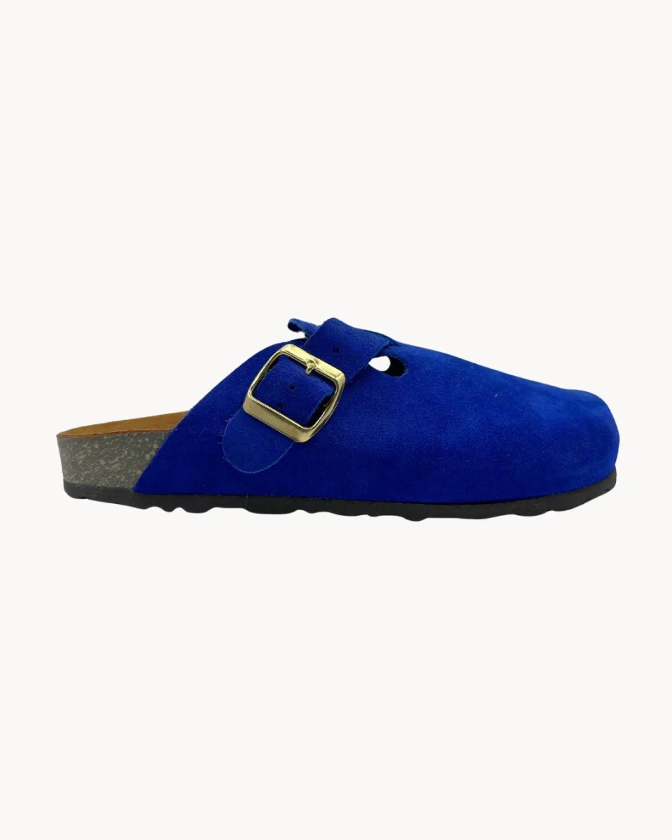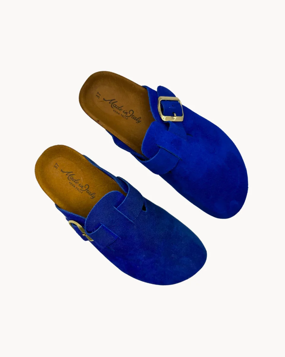 Colore articolo: Blu NavyTomaia in camoscioCinturino regolabile con fibbiaSottopiede sagomatoIntersuola in sugheroSuola in gommaNarrow fitMade in ItalyComposizione: Principale: 100% Crosta Dettagli: Sughero
