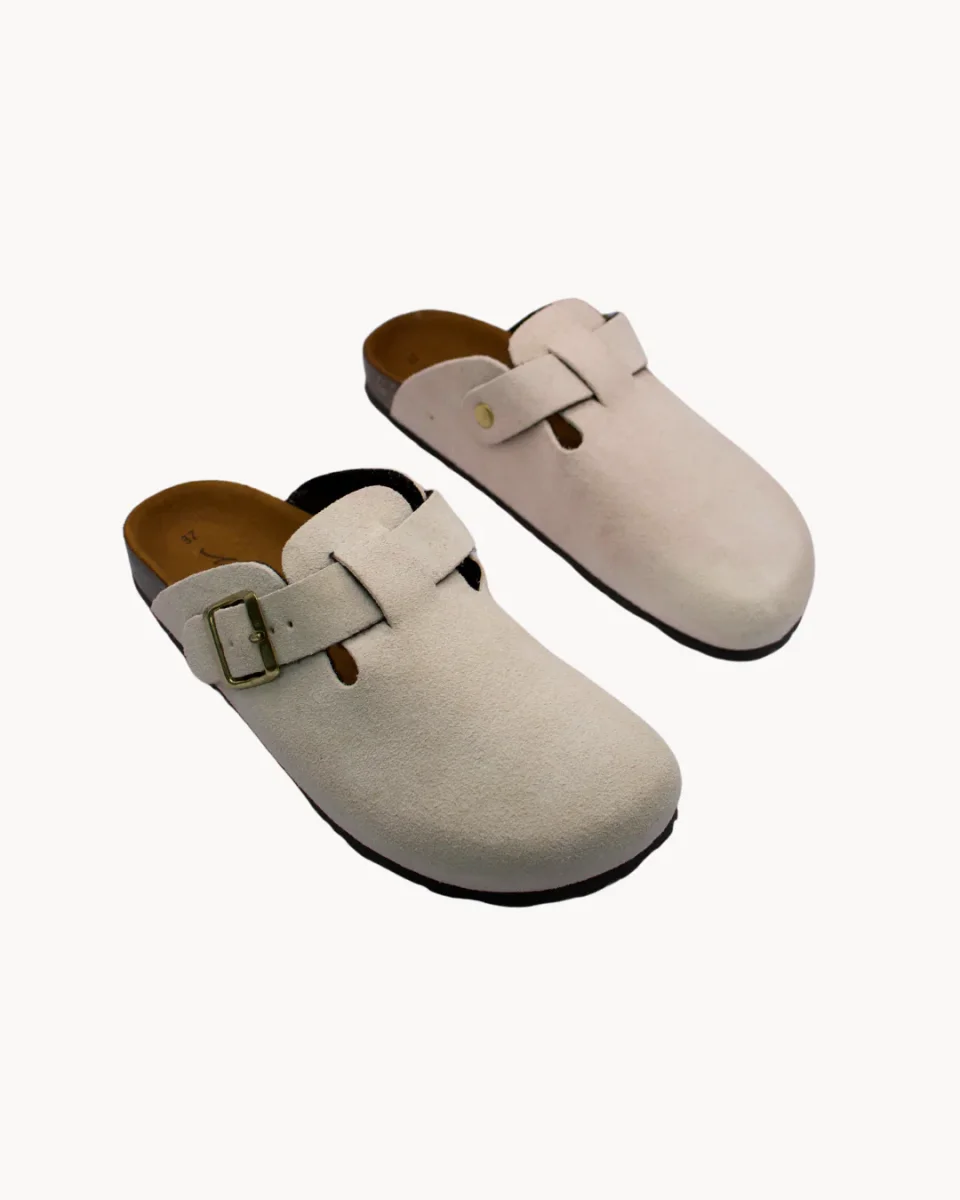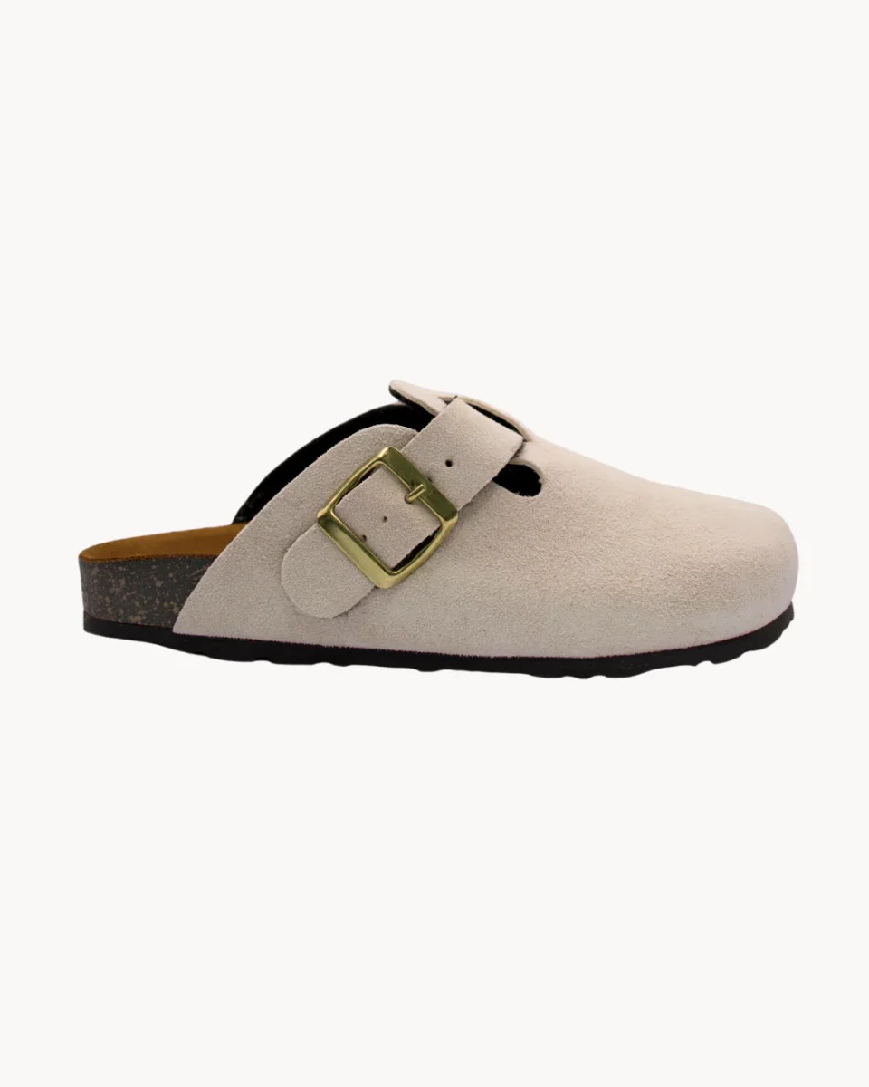 Colore articolo: BiancoTomaia in camoscioCinturino regolabile con fibbiaSottopiede sagomatoIntersuola in sugheroSuola in gommaNarrow fitMade in ItalyComposizione: Principale: 100% Crosta Dettagli: Sughero