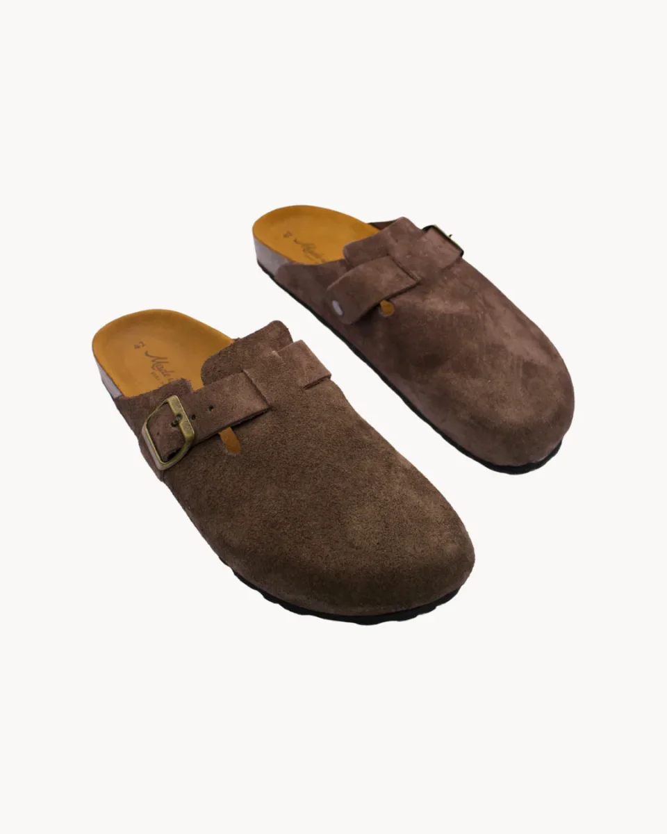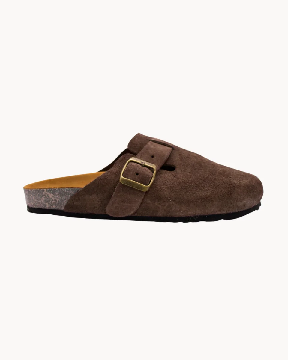 Colore articolo: MarroneTomaia in camoscioCinturino regolabile con fibbiaSottopiede sagomatoIntersuola in sugheroSuola in gommaNarrow fitMade in ItalyComposizione: Principale: 100% Crosta Dettagli: Sughero