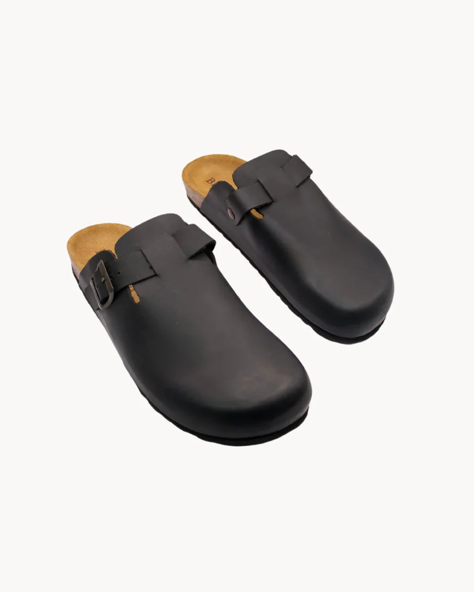 Colore articolo: NeroTomaia in pelle oliataCinturino regolabile con fibbiaSottopiede sagomatoIntersuola in sugheroSuola in gommaMade in ItalyComposizione: Principale: 100% Vacchetta Dettagli: Sughero
