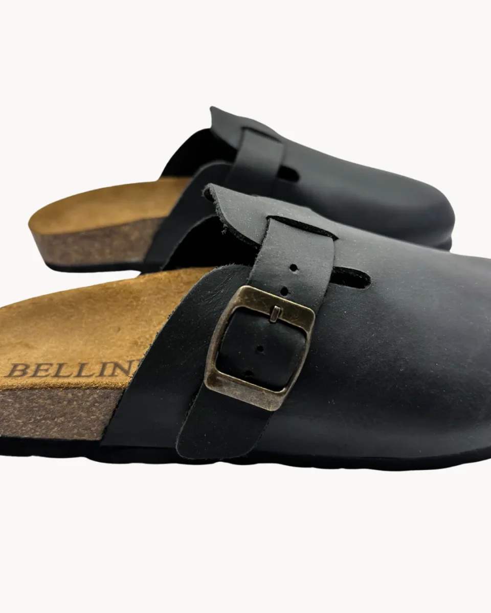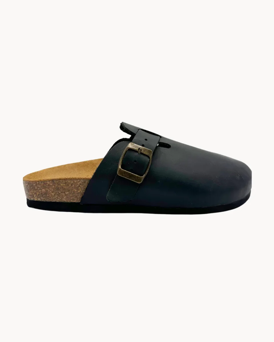 Colore articolo: NeroTomaia in pelle oliataCinturino regolabile con fibbiaSottopiede sagomatoIntersuola in sugheroSuola in gommaMade in ItalyComposizione: Principale: 100% Vacchetta Dettagli: Sughero