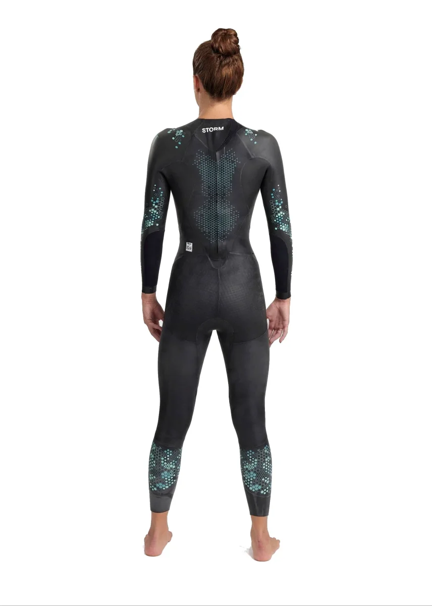 Progettata interamente in neoprene limestone Yamamoto SCS, un materiale non derivato dal petrolio ed a ridotto impatto ambientale, la muta Powerskin Storm รจ stata sviluppata con il contributo dei migliori atleti al mondo ed integra al suo interno la tecnologia Arena in fibra di carbonio, che supporta il corpo durante la nuotata e consente di mantenere una posizione ottimale in acqua.