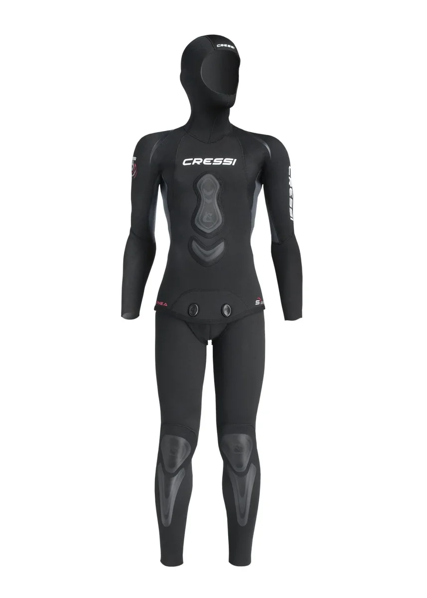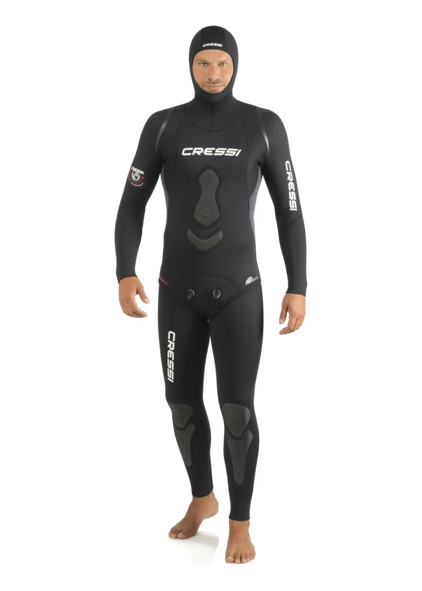 Perfetta anche per freediving muta dal taglio appositamente studiato per rendere particolarmente confortevoli i punti critici di maggior frizione con la pelle. Interno spalmato in black-metallite. Nuovo ed ampio appoggio sternale e con nuove speciali ginocchiere di protezione.