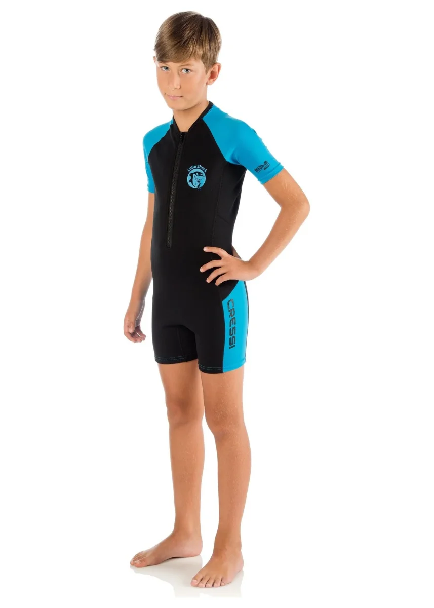 Cressi little shark rappresenta inoltre una protezione efficace contro le meduse. La sua speciale realizzazione in neoprene e tessuto altamente elastico offre eccellente libertà di movimento e un comfort superiore.