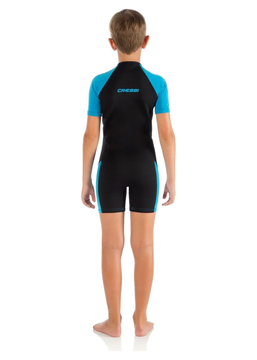La muta Cressi little shark garantisce una buona protezione, sia da asciutta sia da bagnata, contro sole, vento e freddo. La cerniera frontale consente di metterla e toglierla in modo comodo e veloce e riduce al minimo l’ingresso d’acqua.