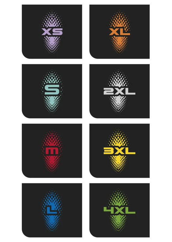 - Taglie facilmente identificabili – Ogni misura ha una stampa colorata per riconoscimento immediato, anche in rastrelliera.