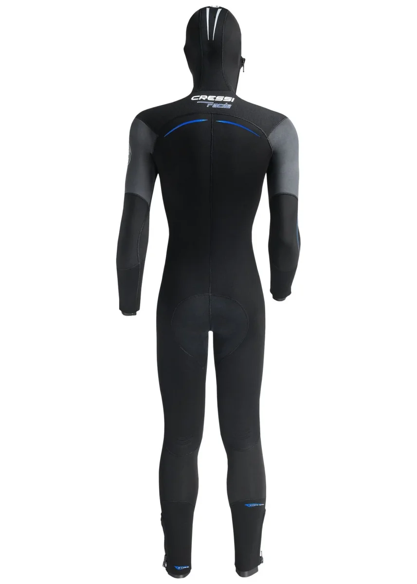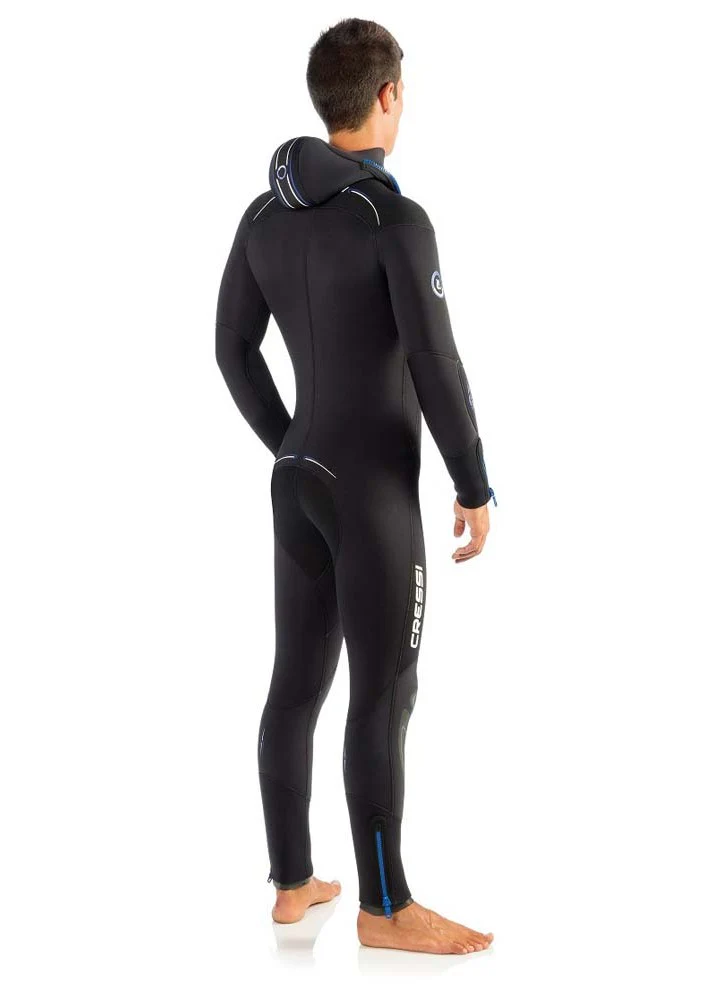 La muta รจ caratterizzata dal sistema water stop system, in cui una particolare pettorina interna in materiale ultrastretch crea una doppia barriera alle infiltrazioni dellโacqua e migliora la coibenza termica. Cerniera trasversale anteriore e speciali fodere in elastic span esternamente e in x-plush internamente agevolano notevolmente la vestibilitร e lโindossamento. Particolari inserti da 6,5 mm su braccia e gambe migliorano lโanatomia articolare consentendo movimenti piรน fluidi. Ulteriore goffratura preformata nelle pieghe delle articolazioni. Rinforzi in small diamond antiabrasione sulle spalle e sul retro (natiche). Rinforzo protettivo sulle ginocchia. Cappuccio da 5 mm dotato di valvola air free per lโeliminazione dellโaria. Polsi e caviglie presentano un doppio manicotto con cerniera; sui polsi interni รจ riportata in evidenza la taglia