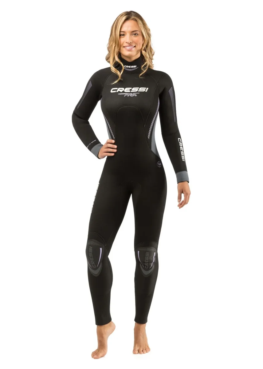 Elegante, calda e versatile, la fast può essere usata nella più ampia gamma di acque temperate e fredde. In neoprene 7 mm bifoderato, resiste bene alla compressione in profondità per il massimo mantenimento del calore. Le gambe preformate migliorano la flessibilità per una pinneggiata più facile