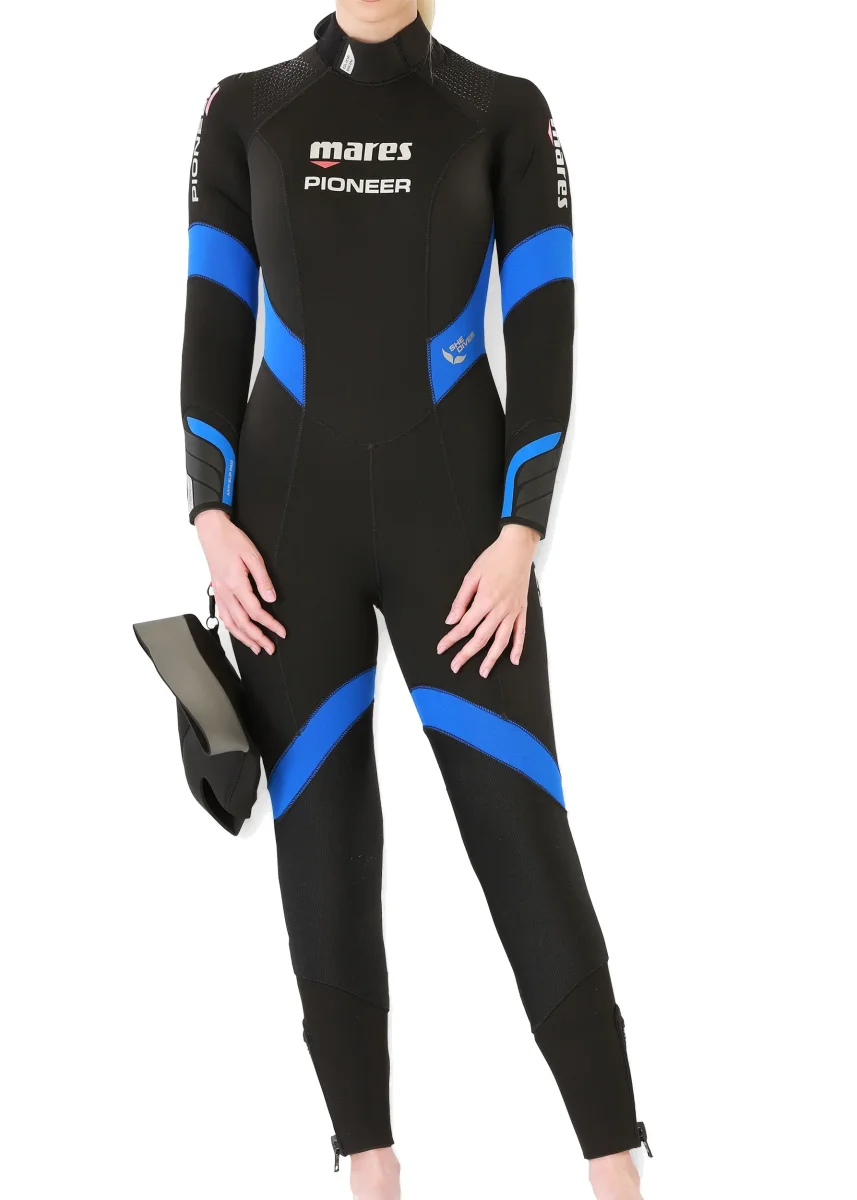La muta da sub Pioneer 7mm da donna è una muta umida per acque fredde in Neoprene & Ultrastretch Neoprene che garantisce comodità, facilità di vestizione e comfort. Il design è ora più moderno in pannelli di neoprene colorato blu per la Pioneer 7mm da donna.