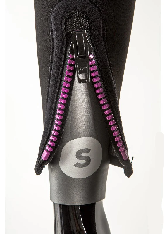 È una muta monopezzo realizzata in neoprene Ultrastretch, con cerniera posteriore a flap interno che agisce da barriera per le infiltrazioni d’acqua.