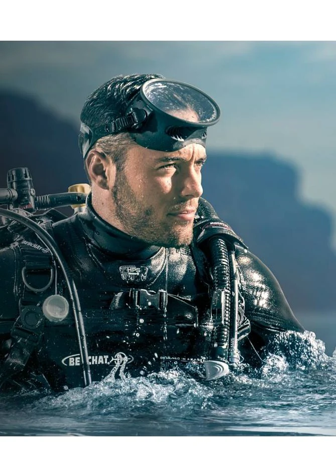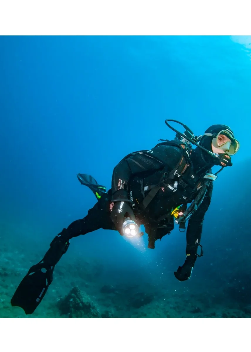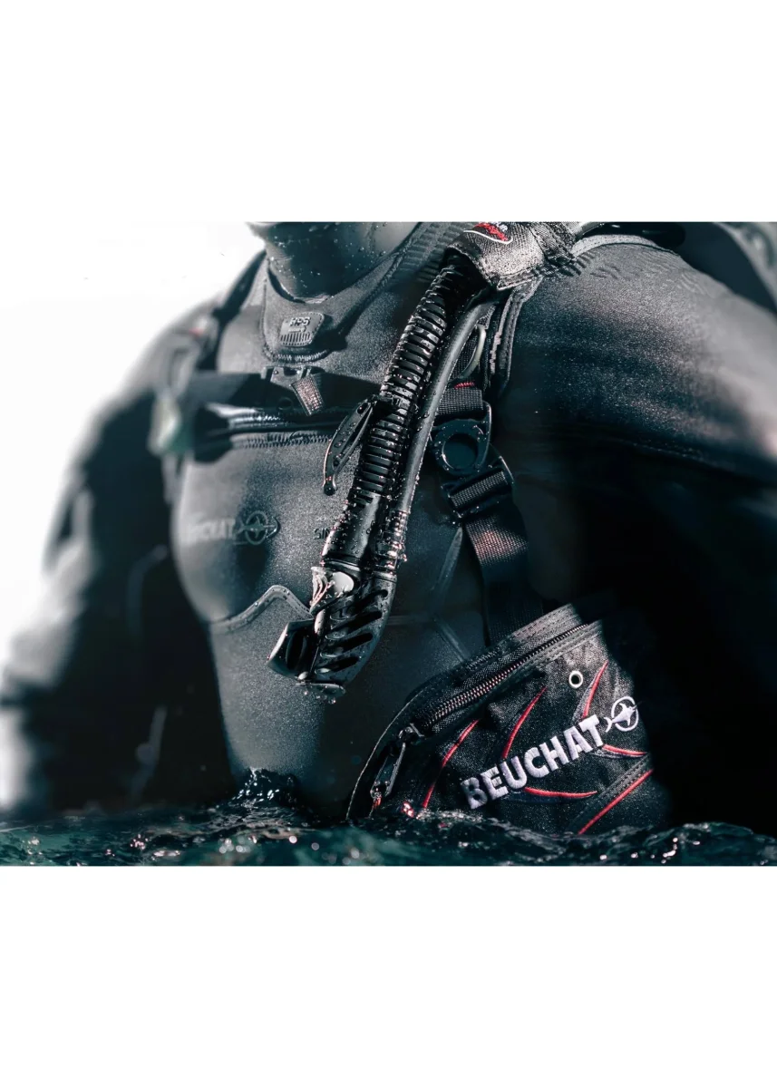 - La posizione della cerniera è stata pensata per offrire una grande libertà di movimento delle braccia durante l’immersione, dando loro più facilità di movimento, meno vincoli.