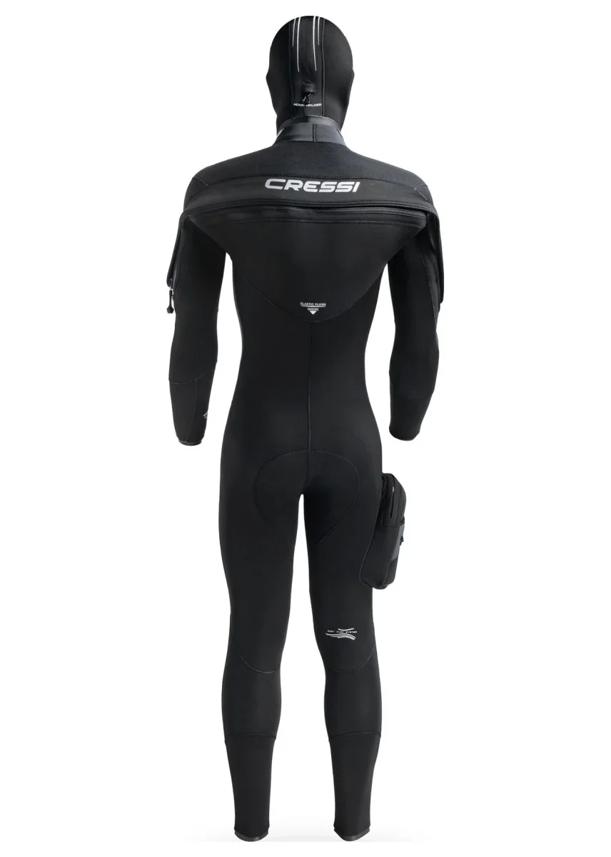 Eโ dotata di hood holder per lโaggancio del cappuccio e di particolari rinforzi in small dymond anti abrasione su spalle, ginocchia e nella zona posteriore. Doppi manicotti su polsi e caviglie. Confortevole cerniera stagna posteriore master seal.
