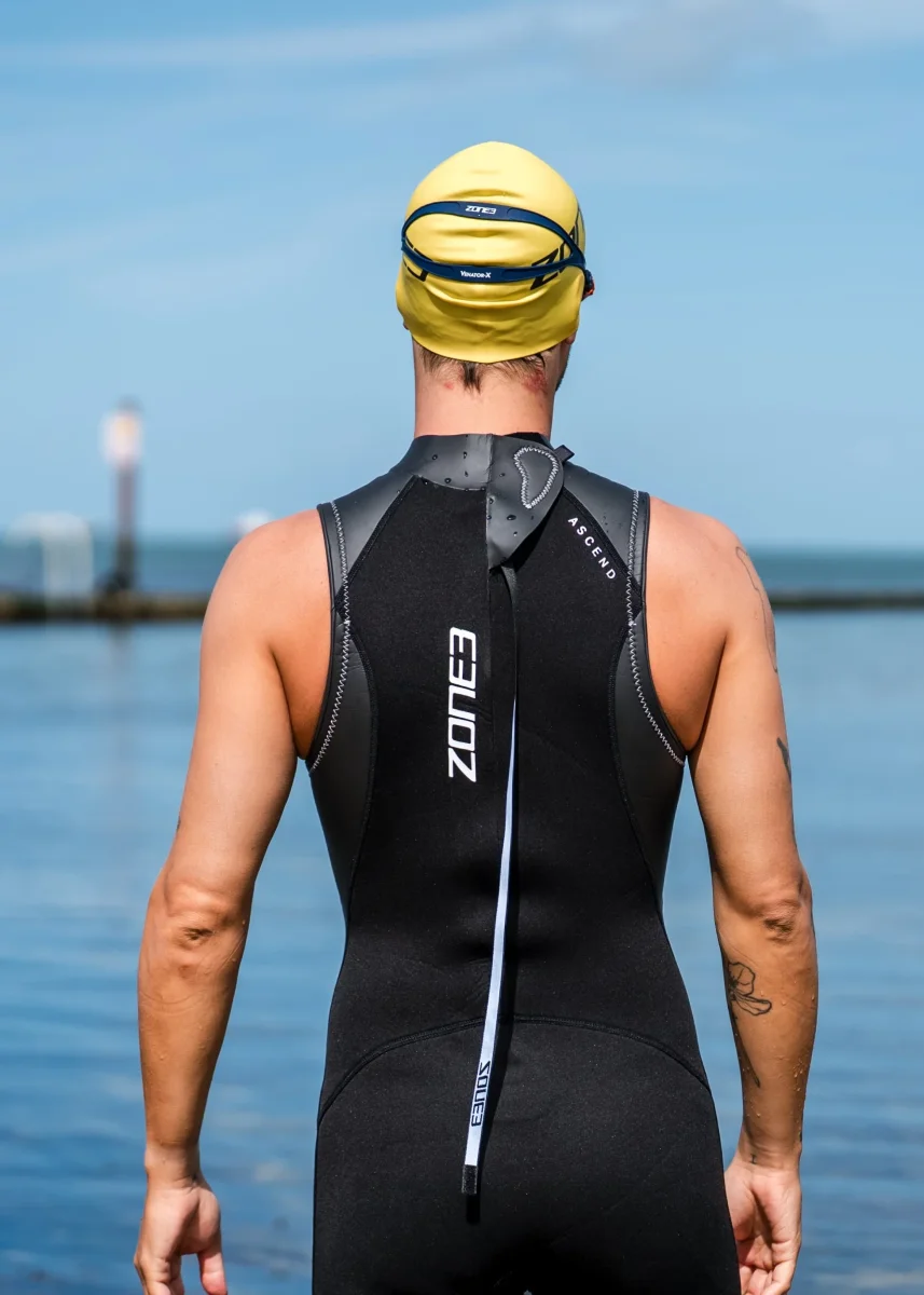 La muta smanicata Zone3 Ascend Sleeveless Wetsuit รจ progettata per offrire ai nuotatori una sensazione di confidenza durante l’allenamento in acque libere e nel triathlon. La sua costruzione senza maniche elimina la resistenza sulle spalle, favorendo una bracciata naturale e una rotazione della spalla piรน fluida. La combinazione di neoprene SCS da 2 mm e 3 mm offre una galleggiabilitร e stabilitร affidabili, aiutando a mantenere l’assetto e l’efficienza su diverse distanze.