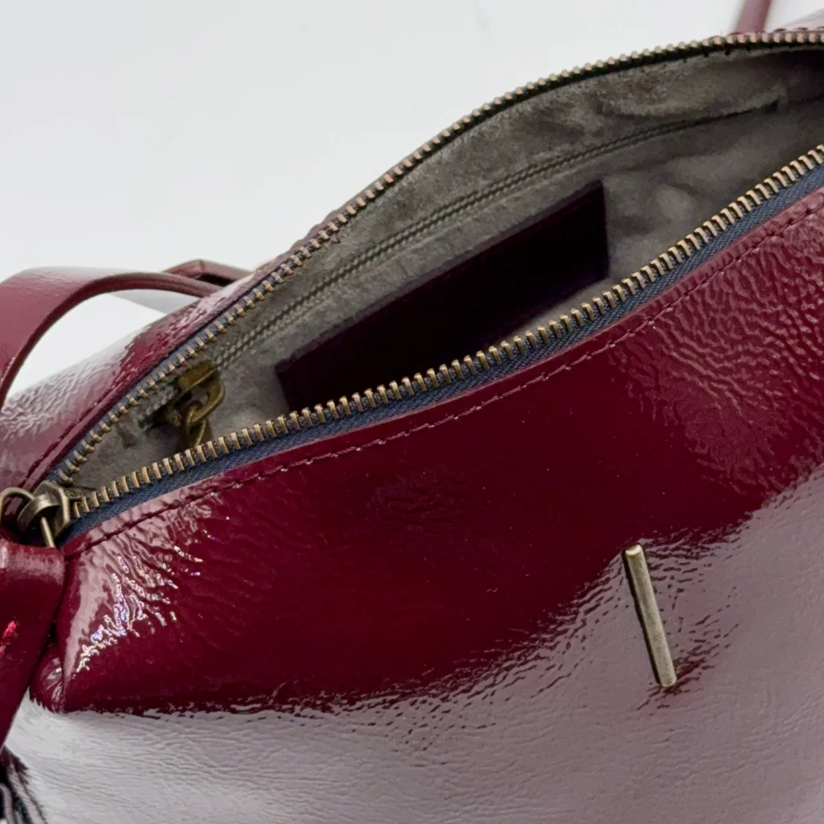 Chiusura con zip in ottone, e tasca interna con zip. Due tasche laterali, con zip, e tracolla regolabile per uso a spalla o crossbody. Fodera in microfibra.