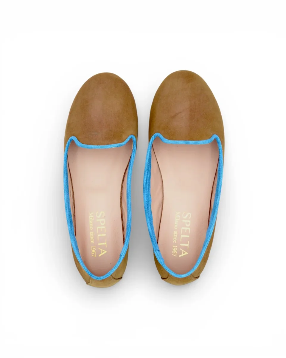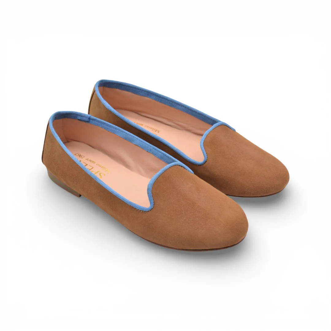 ORTENSIA in Camoscio Cioccolato, Gros Azzurro – PRONTA CONSEGNA