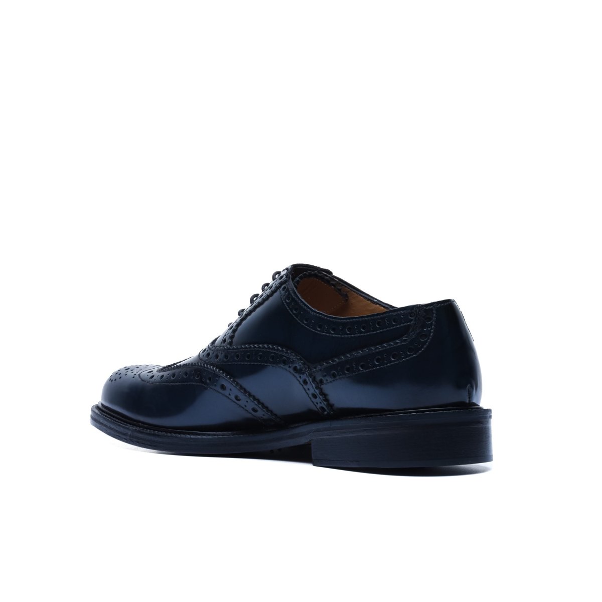 La finitura “a specchio” della pelle che rende questa scarpa unica è ottenuta con un lungo processo di spazzolatura effettuato da artigiani esperti.