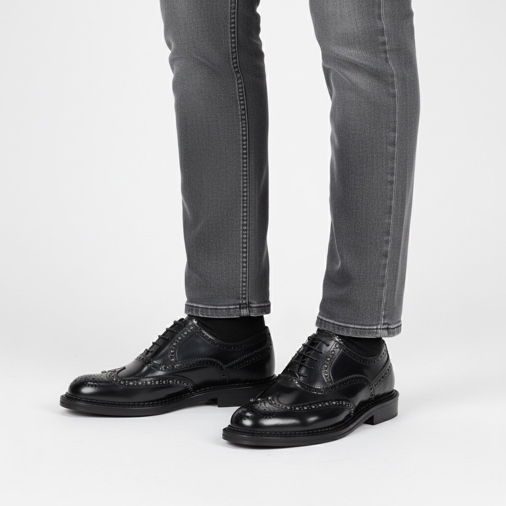 Calzatura artigianale made in Italy modello Oxford stringata, conosciuta anche come “Francesina”.